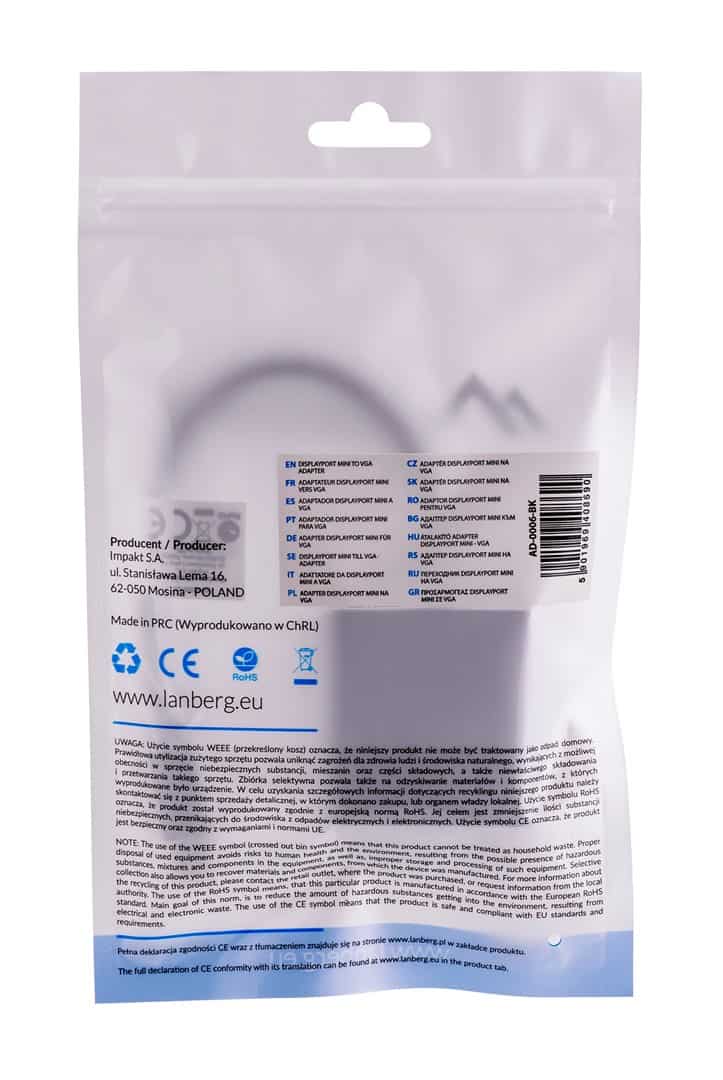 Lanberg — Adapter Lanberg AD-0006-BK (Mini DisplayPort M – D-Sub (VGA) F; 0,20m; kolor czarny)