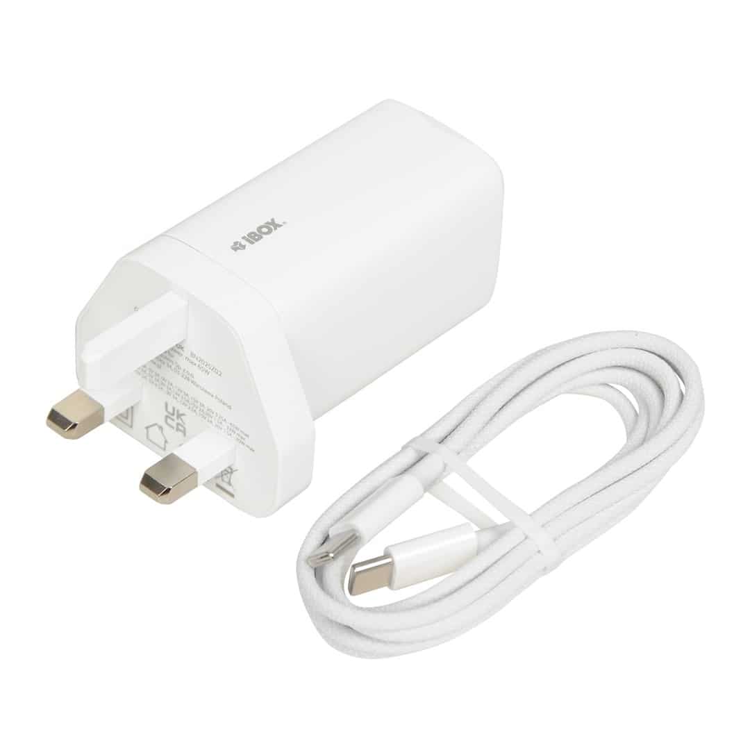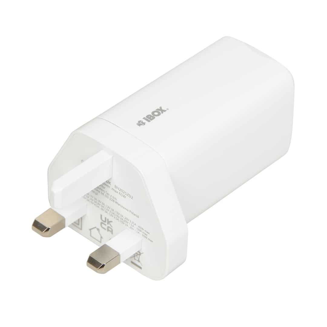 IBOX — ŁADOWARKA SIECIOWA I-BOX C-65 GAN PD65W KABEL, BIAŁA