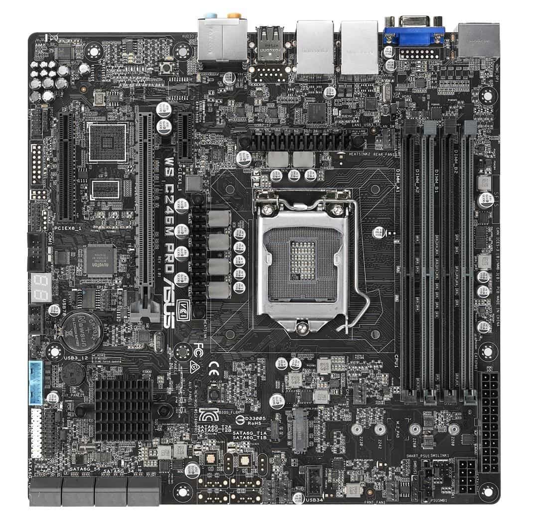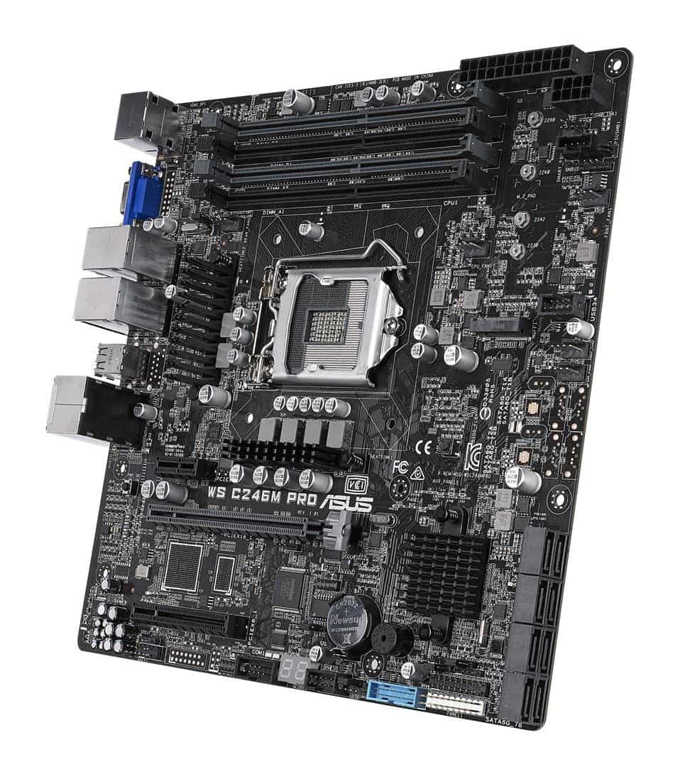 ASUS — ASUS WS C246M PRO , 1 x Socket LGA1151, Intel C246 Chipset,4x DDR4 2666 UDIMM non-ECC/ECC, 3x PCIe 3.0, 8x SATA, Intel Rapid Storage Technology, 1x Intel® I210AT, 1x i219-LM, 2x USB 2.0, 1x USB 3.0, 1x M.2, 1x VGA