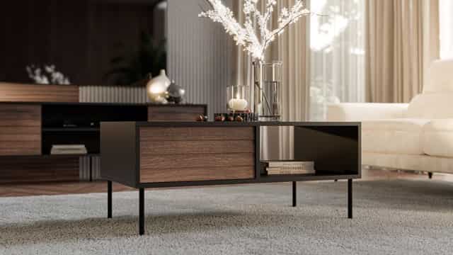 Cama MEBLE — Ława/Stolik CORTINA 100x55x45 czarny/orzech