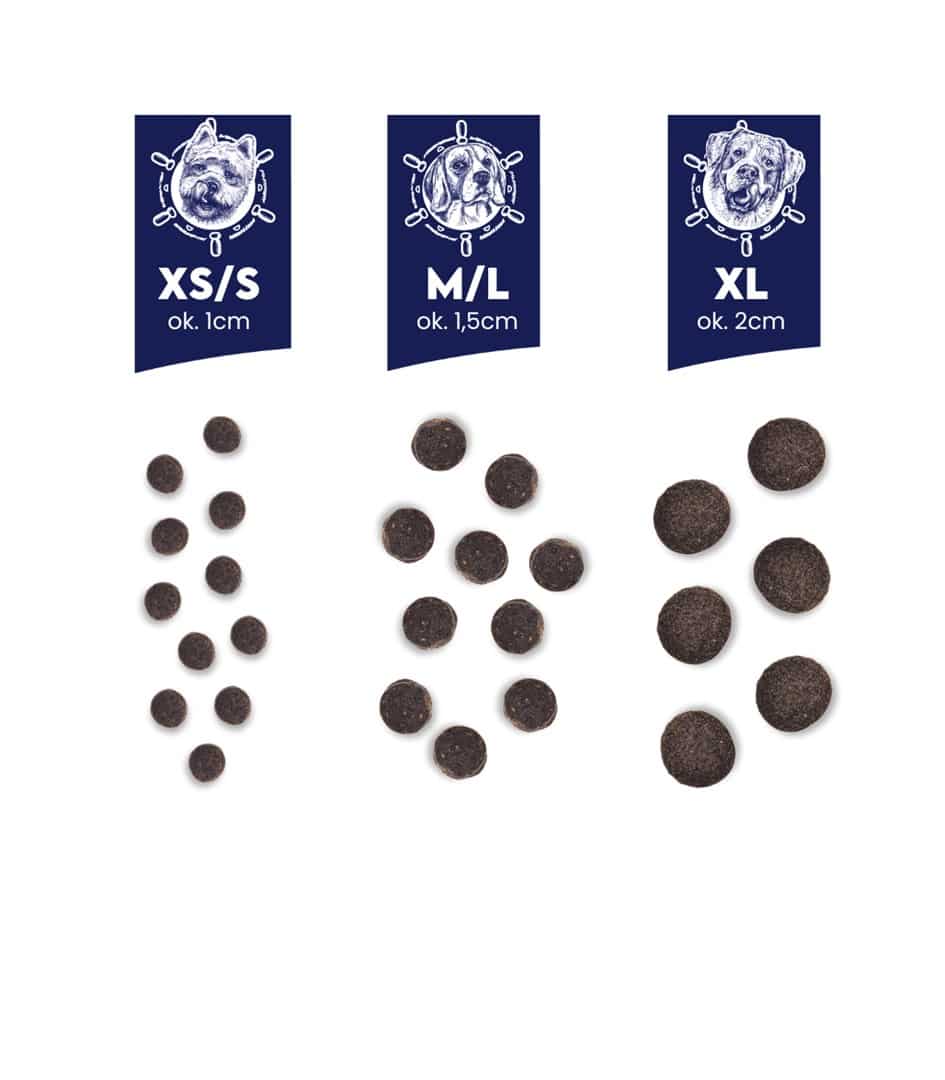 OstrzeżeniaPrzestrzegać zalecanej dawki karmy zgodnie z instrukcjami na opakowaniu., Przechowywać w suchym i chłodnym miejscu, z dala od bezpośredniego światła słonecznego., Zapewnić, że miska psa jest zawsze czysta, aby zapobiec zanieczyszczeniu karmy.