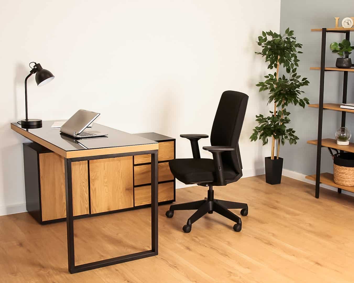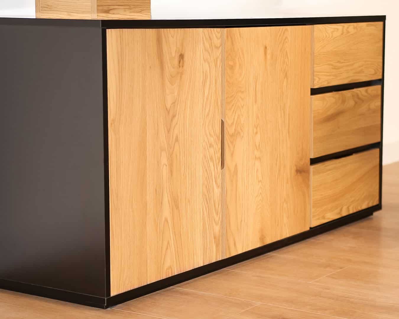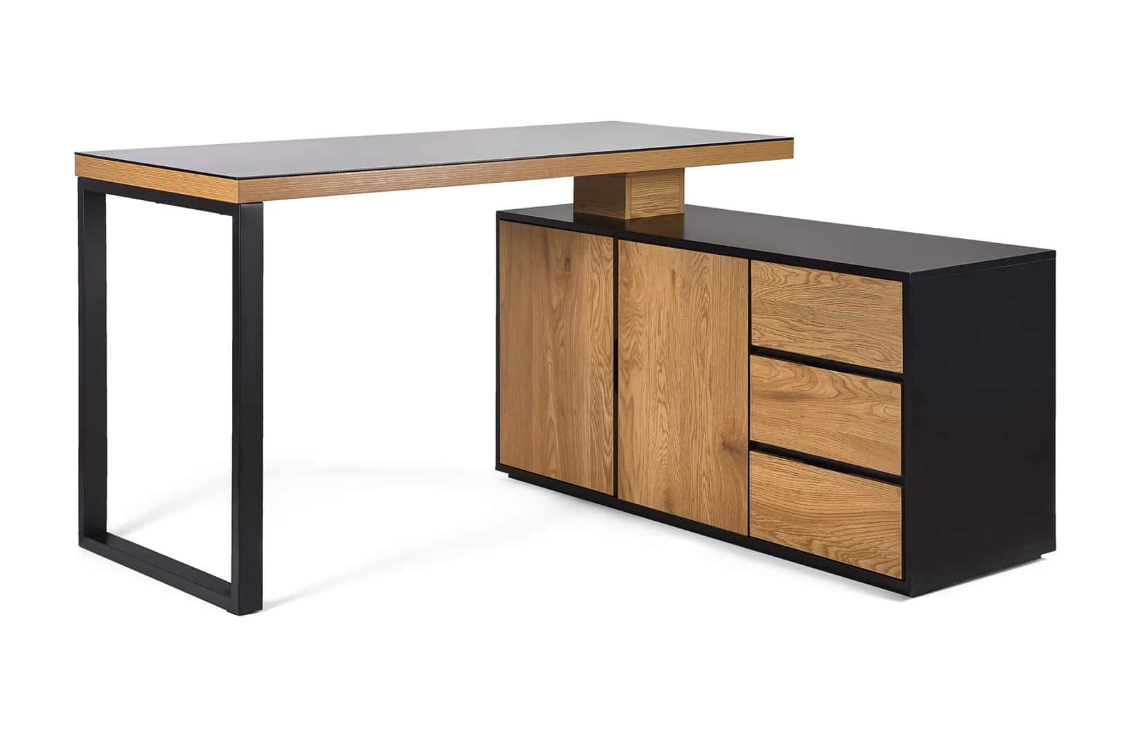 UNIQUE — Biurko z blatem obrotowym i komodą NEIL czarny/dąb