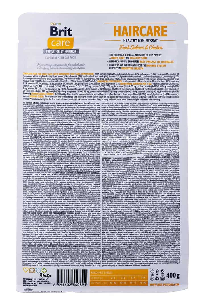 Brit — BRIT Care Grain-Free Adult Haircare Healthy&Shiny Coat – sucha karma dla kota – 400 g