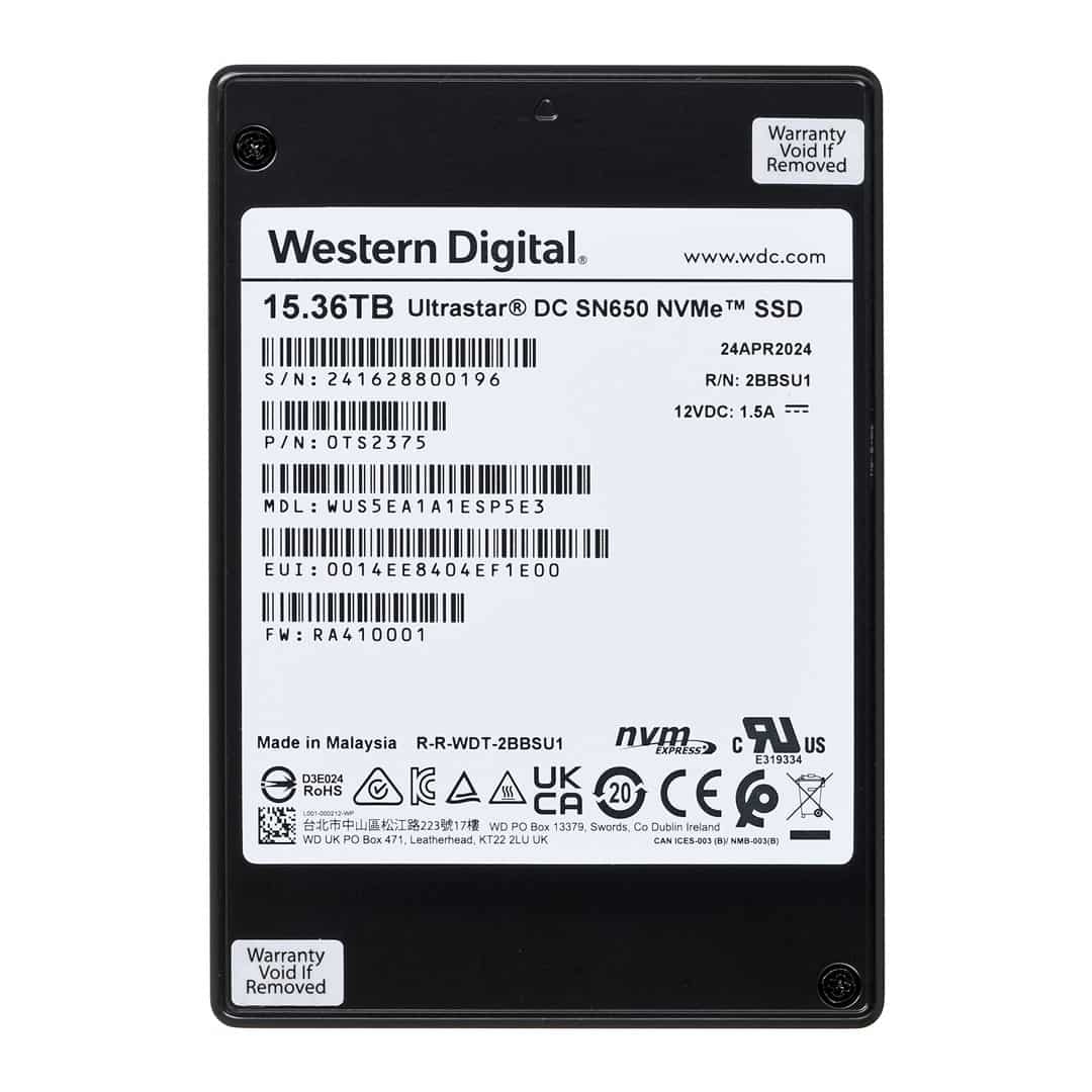 Western Digital — Dysk SSD Western Digital Ultrastar DC SN650 WUS5EA1A1ESP5E3 (15.36 TB; U.3; PCIe NVMe 4.0 ; 1DW/D; ISE)