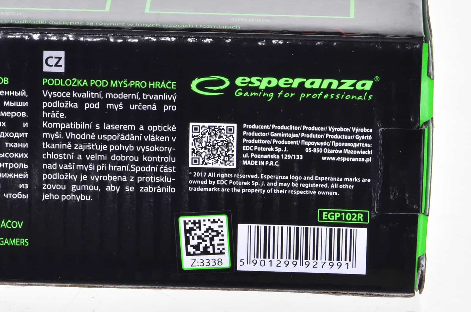 Esperanza — Podkładka gamingowa pod mysz Esperanza CLASSIC EGP103K (400mm x 300mm)