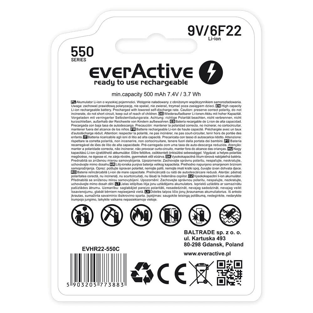 everActive — EVERACTIVE AKUMULATOREK 6F22/9V LI-ION 550 MAH Z USB TYP C EVHR22-550C
