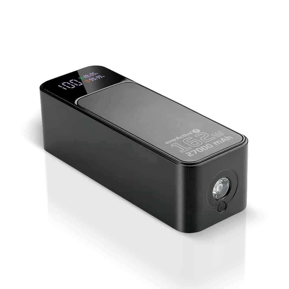 everActive — EVERACTIVE POWERBANK 27 000MAH, 1X USB, 2X USB-C, 162,5W, QC4+, WBUDOWANA LATARKA, WYŚWIETLACZ LCD, CZARNY EB-27Q