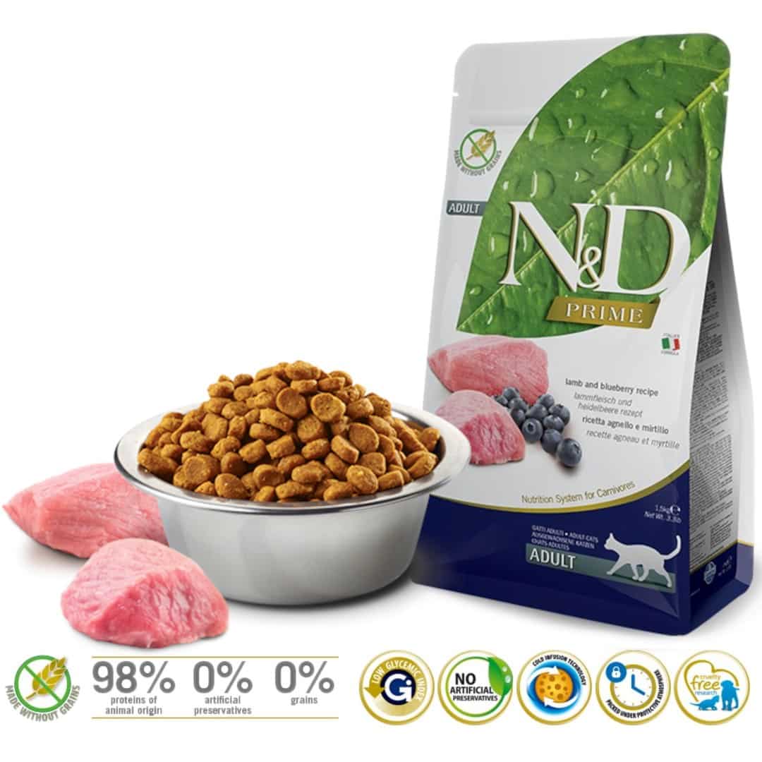 Farmina — FARMINA N&D Prime Lamb & Blueberry Adult – sucha karma dla kota – 1,5kg
