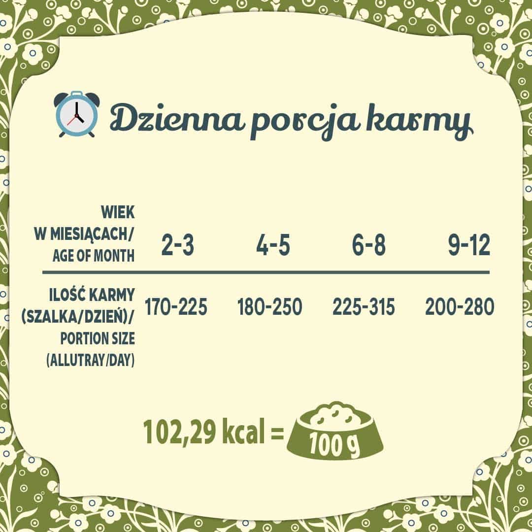 Dodatkowe cechyBez kurczaka, Zdrowie ogólne, Alergia, Bezglutenowe, Nadwrażliwość pokarmowa, Bezzbożowe, Monobiałkowe, Okres wzrostu