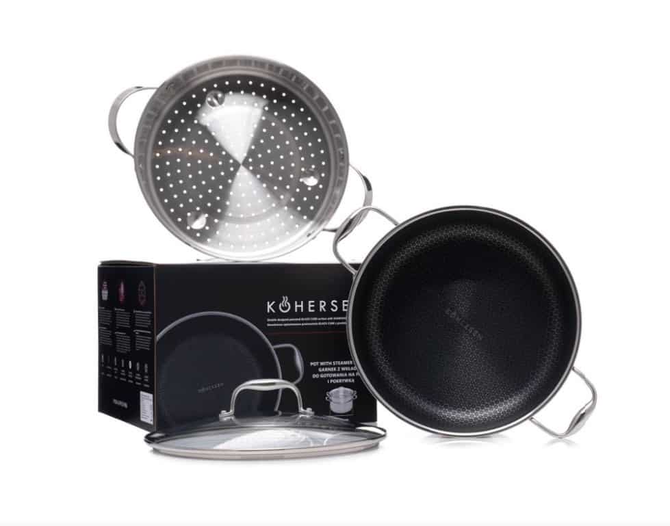 KOHERSEN — Garnek z powłoką DIAMOND Kohersen Black Cube z funkcją gotowania na parze (28 cm ; 8,3l)