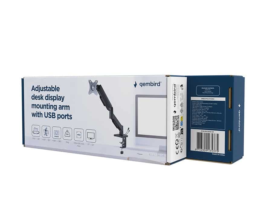 GEMBIRD — GEMBIRD BIURKOWE REGULOWANE RAMIĘ/UCHWYT NA MONITOR Z PORTAMI USB (REGULOWANE), OD 17" DO 32", OBCIĄŻENIE DO 9KG
