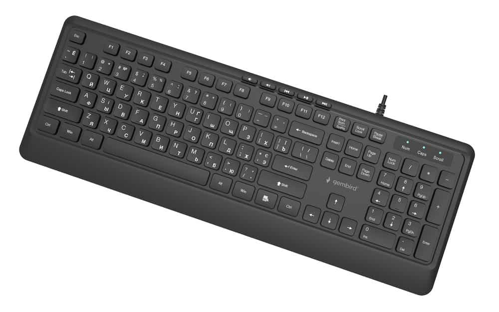 GEMBIRD — GEMBIRD PRZEWODOWA KLAWIATURA MULTIMEDIALNA SLIM 5 KLAWISZY HOTKEYS, RU LAYOUT, CZARNA