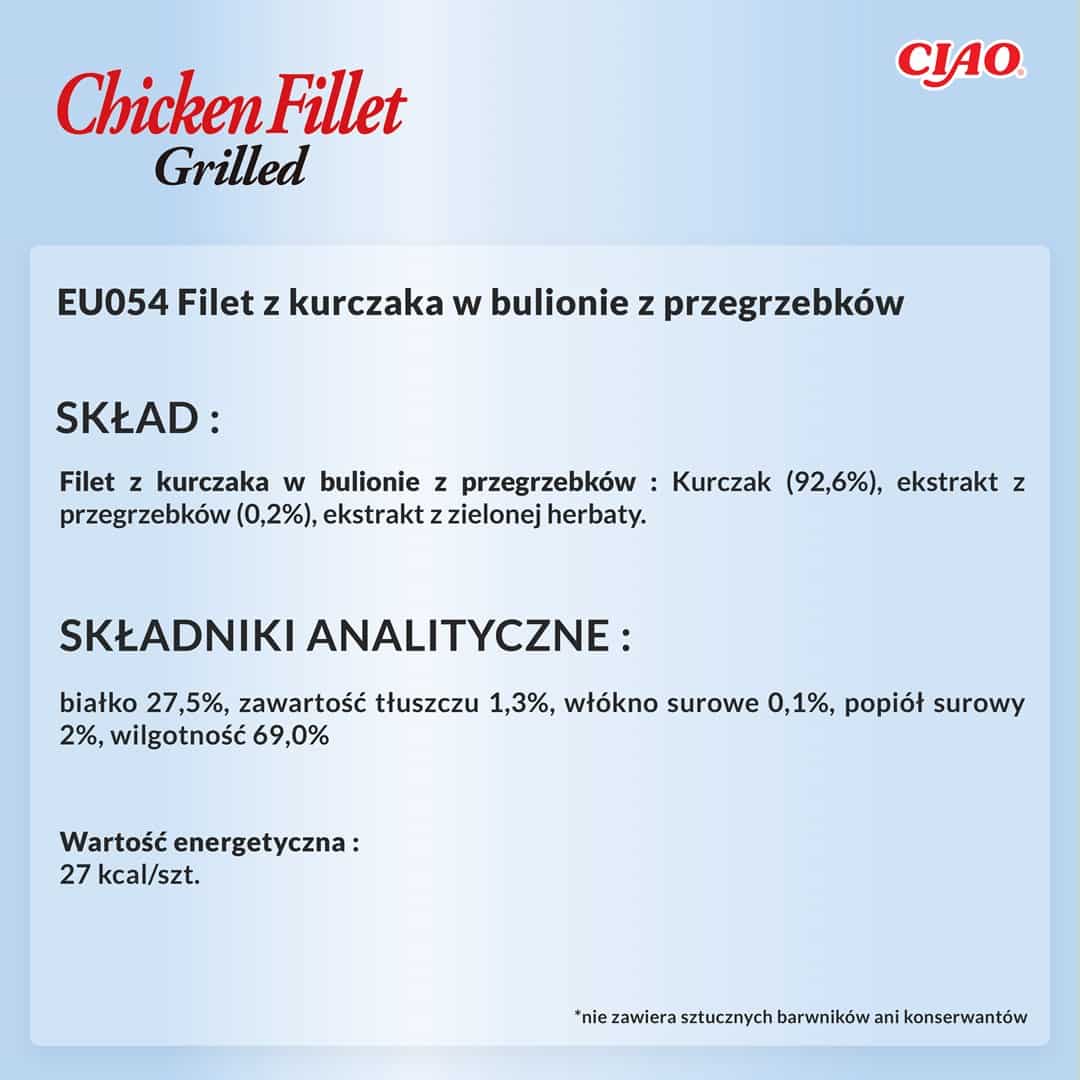 INABA — INABA Grilled Chicken Filet z kurczaka w bulionie o smaku przegrzebków – przysmak dla kota – 25 g