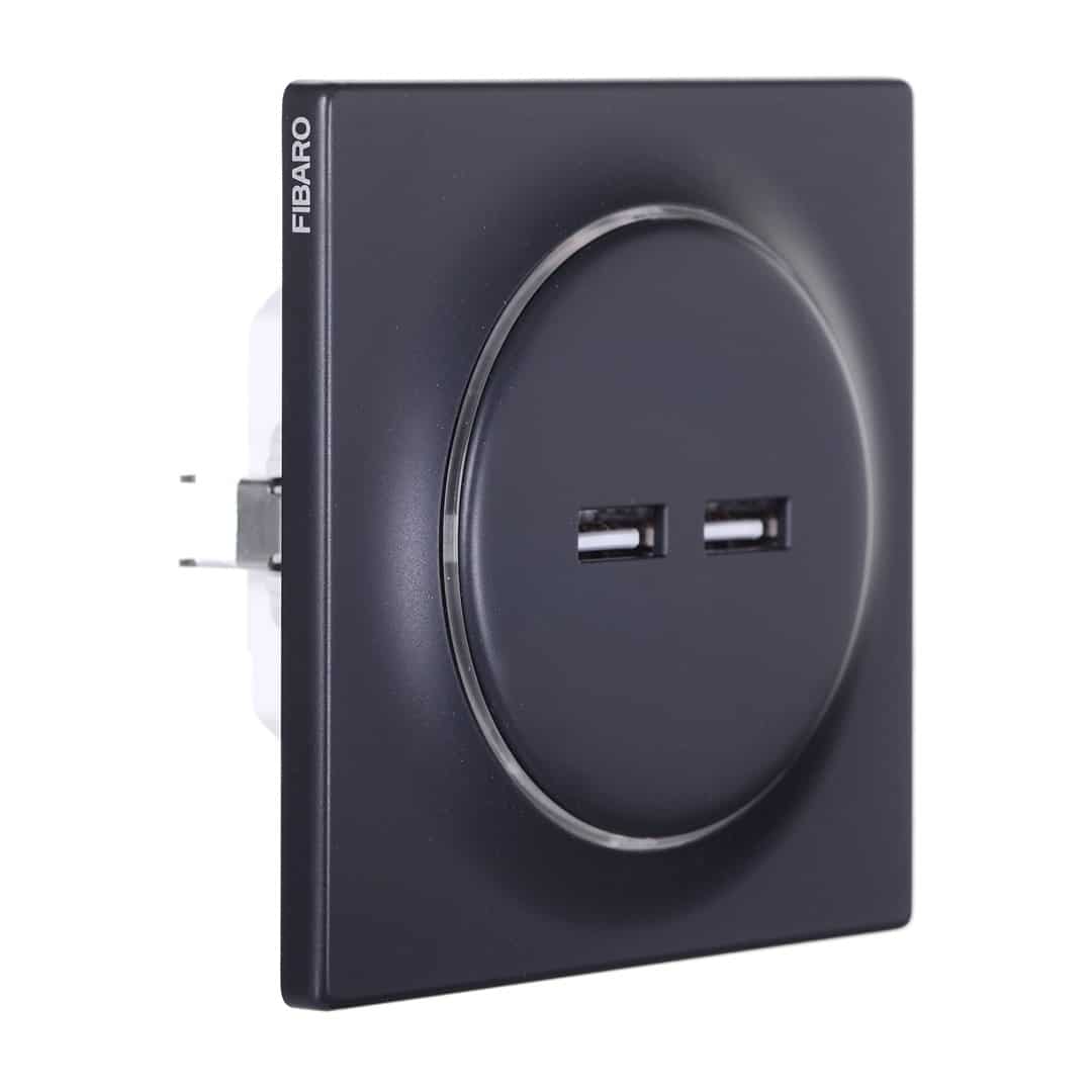 FIBARO — Inteligentne gniazdko USB FIBARO Walli N Outlet, antracyt (FGWU-021-8)