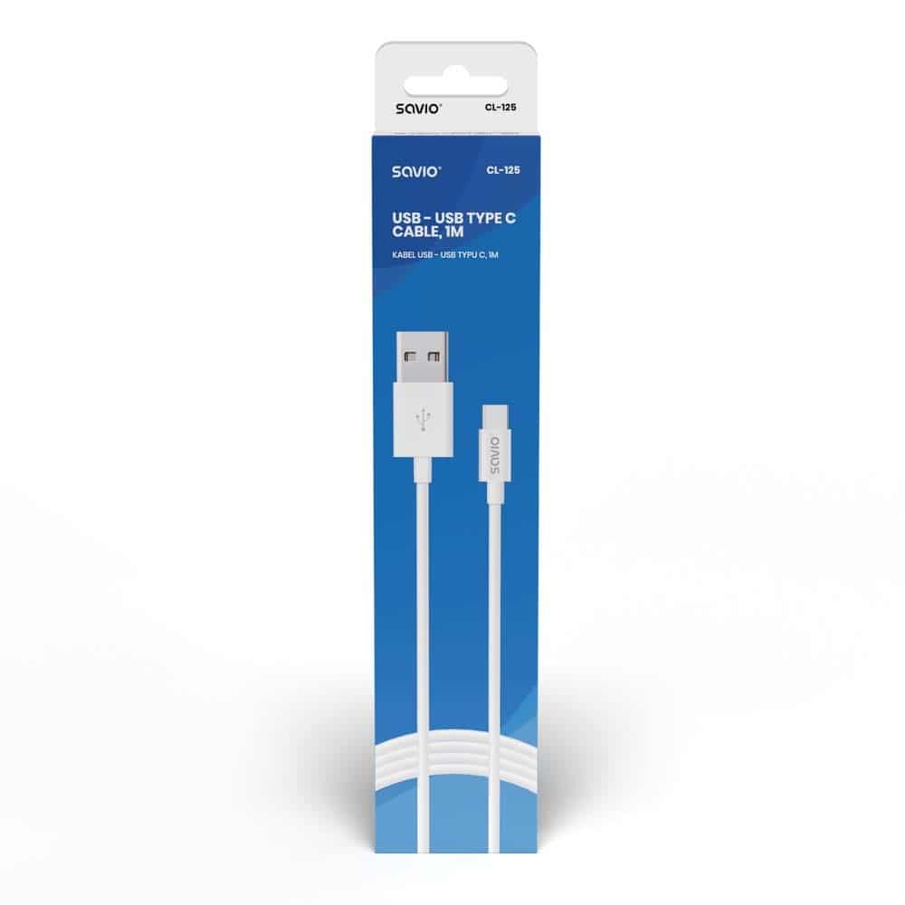 SAVIO — Kabel SAVIO CL-125 (USB typu C – USB 2.0 typu A ; 1m; kolor biały)