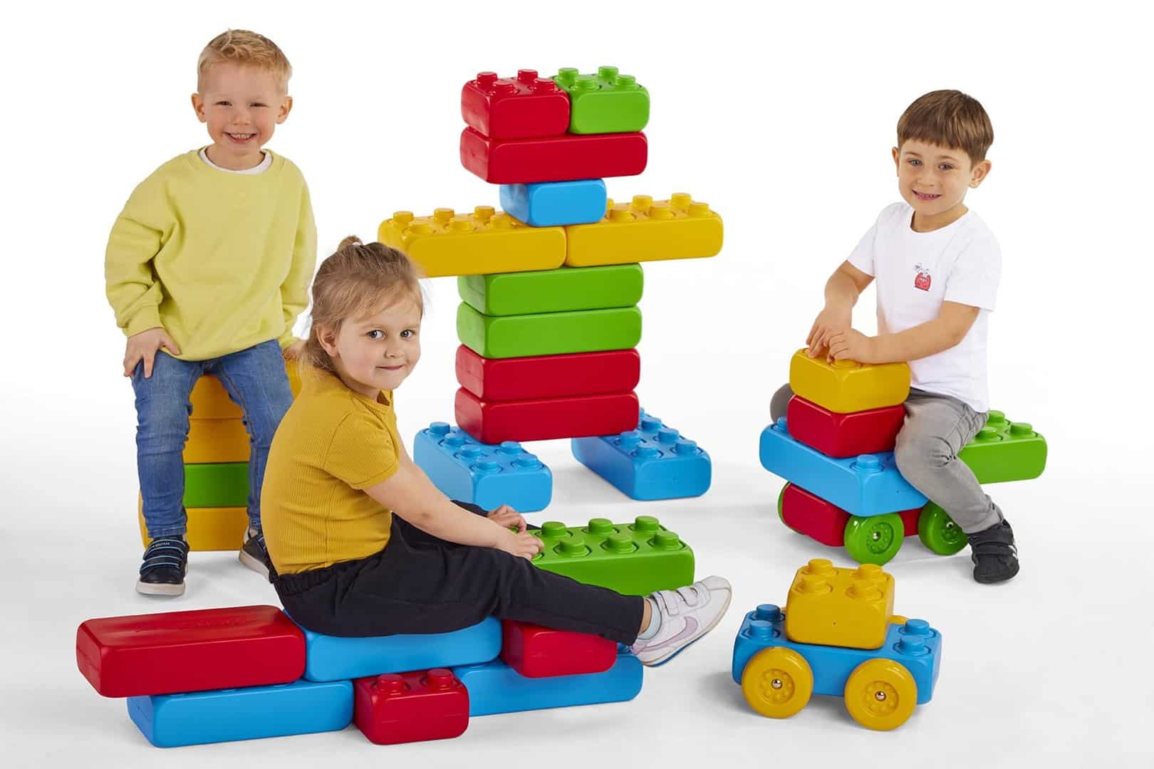 Marioinex — Klocki budowlane "cegły" Marioinex + 2 kółka, 30 elementów
