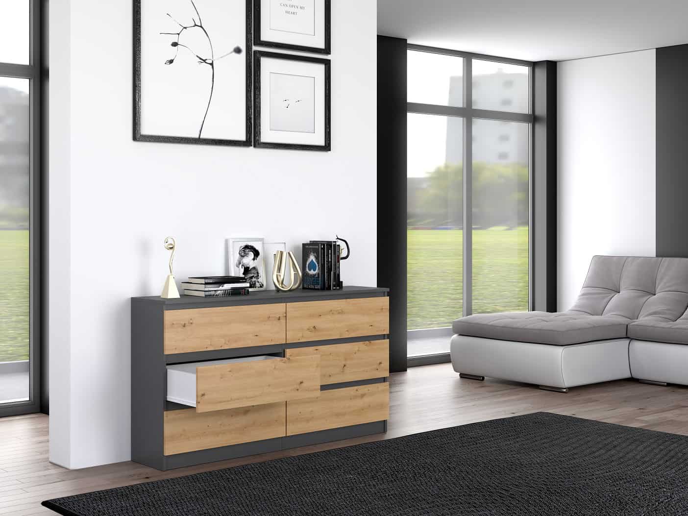 TOP E SHOP — Komoda M6 140 138x40xH77 antracyt/artisan