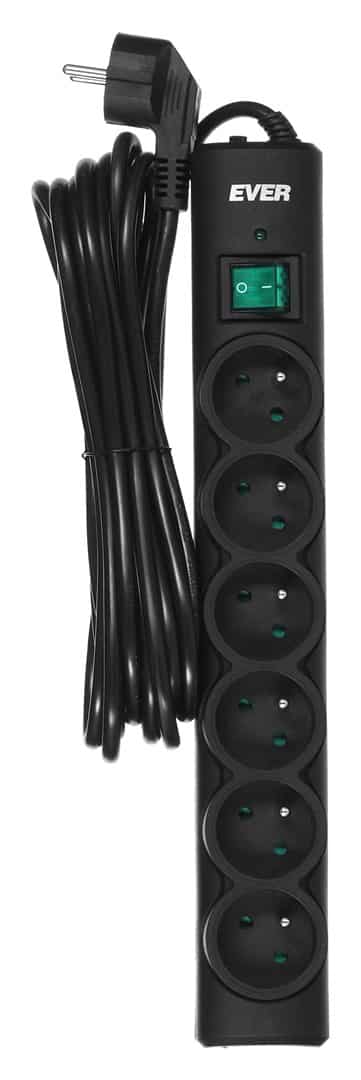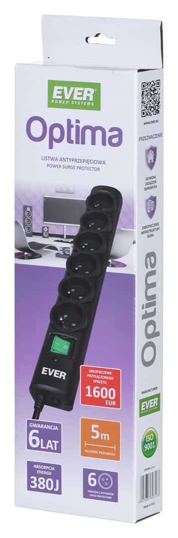 Ever — Listwa przeciwprzepięciowa Ever OPTIMA 5,0m (6 x UTE; 10 A; kolor czarny) (T/LZ08-OPT050/0000)