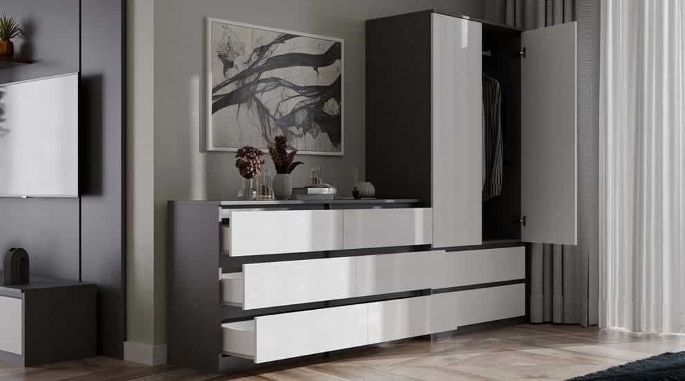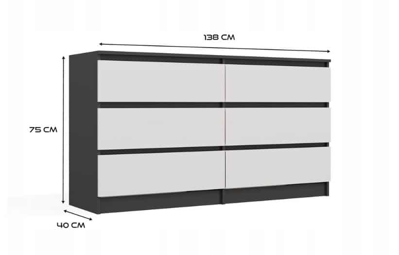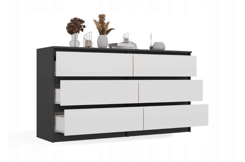 TOP E SHOP — M6 MALWA KOMODA 140 CM 6 SZUFLAD ANT/BIEL KOMPLET