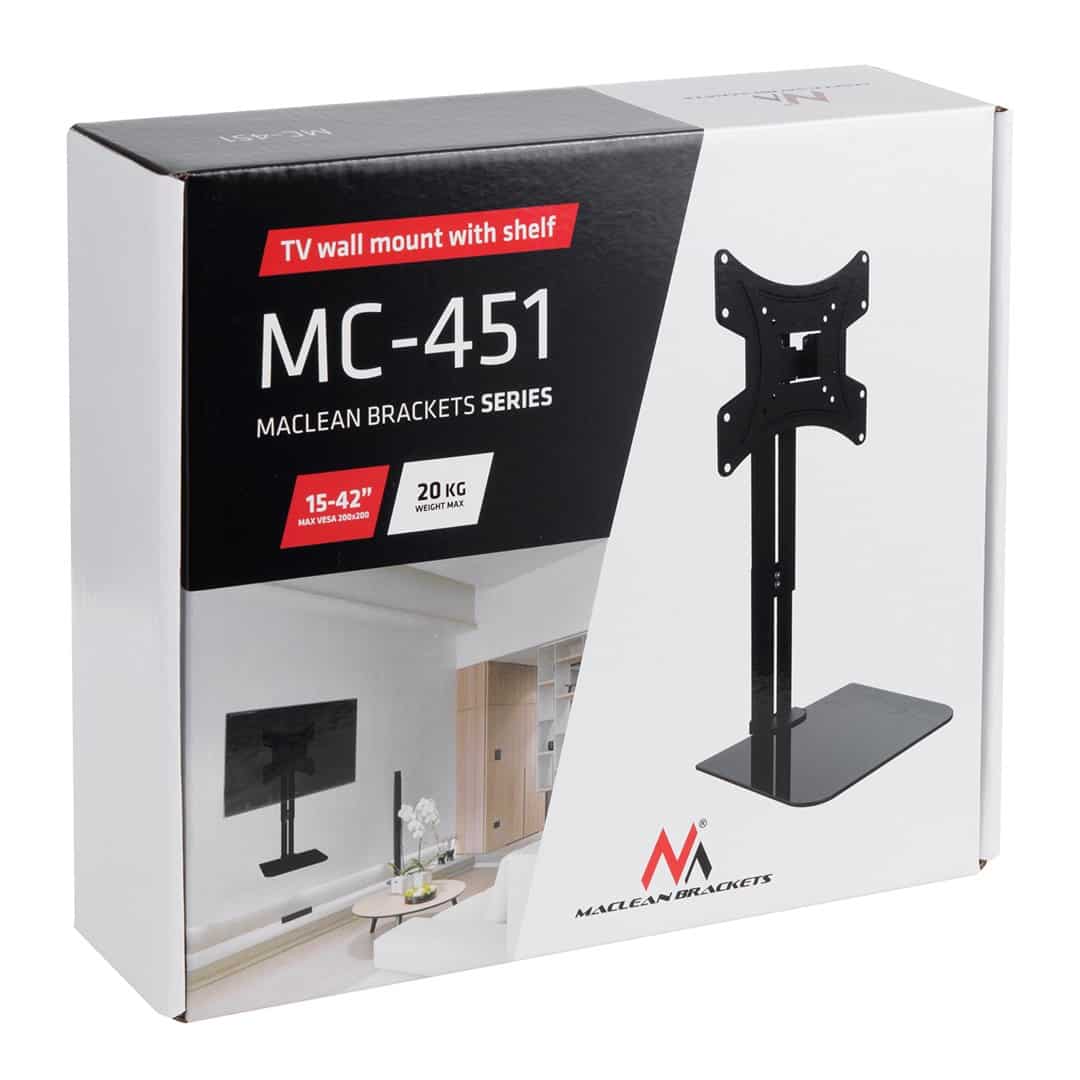 Maclean — MACLEAN UCHWYT NA ŚCIANĘ DO TV Z PÓŁKĄ MC-451