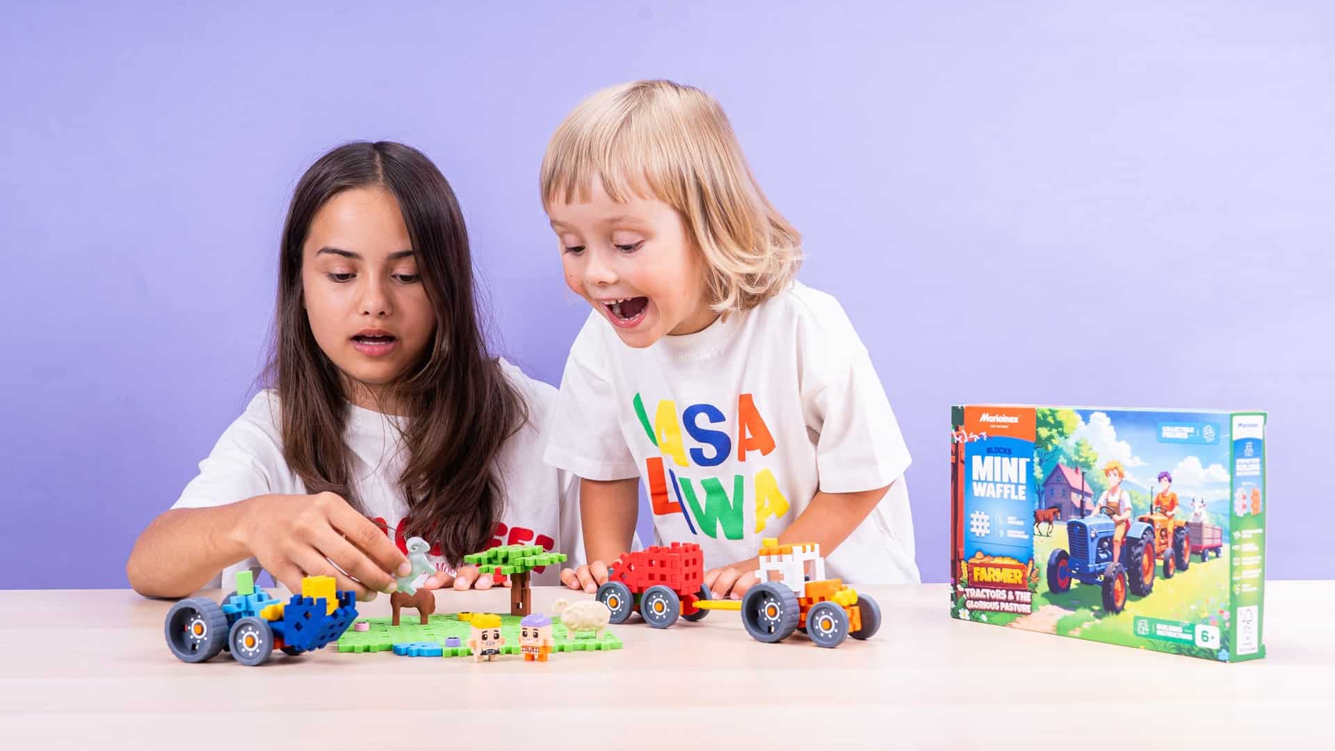 Marioinex — MARIOINEX Klocki Mini Waffle Farmer Traktory i wypasiona łąka, 110 elementów