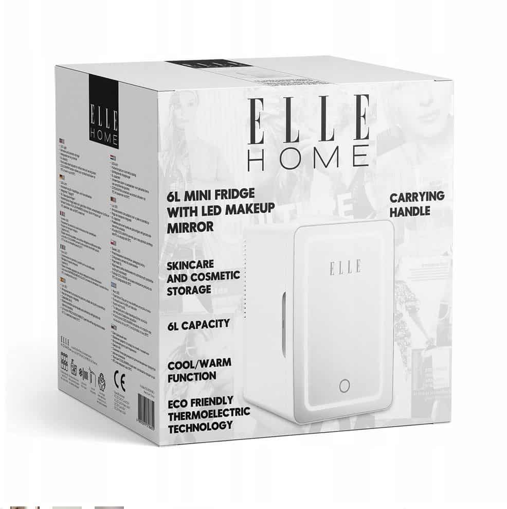 Elle — Mini lodówka z lusterkiem do makijażu LED ELLE 4L biała