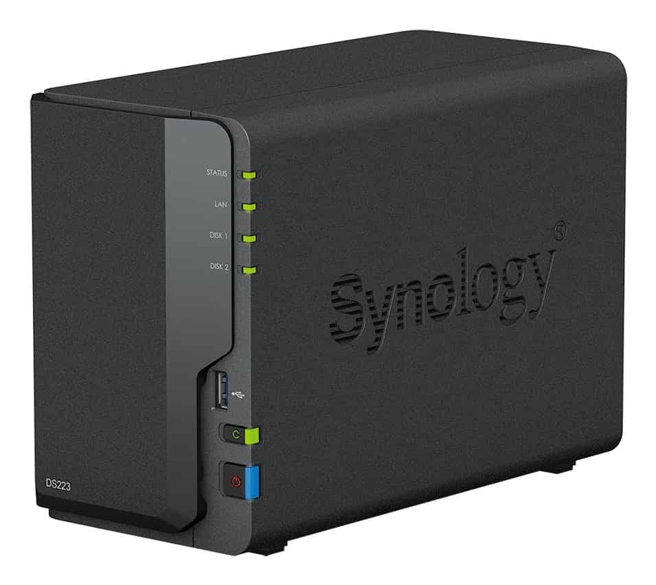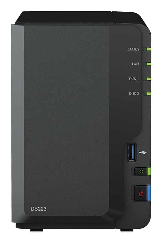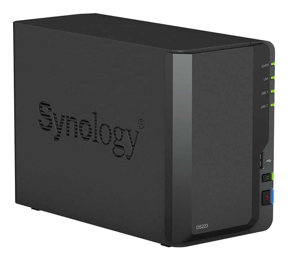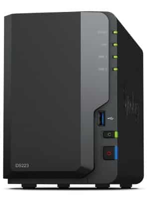 NAS Synology DS223; Tower; 2x (3.5" SATA HDD)/2.5" HDD SSD); Realtek RTD1619B;,2GB DDR4, 1x 1GbE RJ-45 — Primavo — Primavo