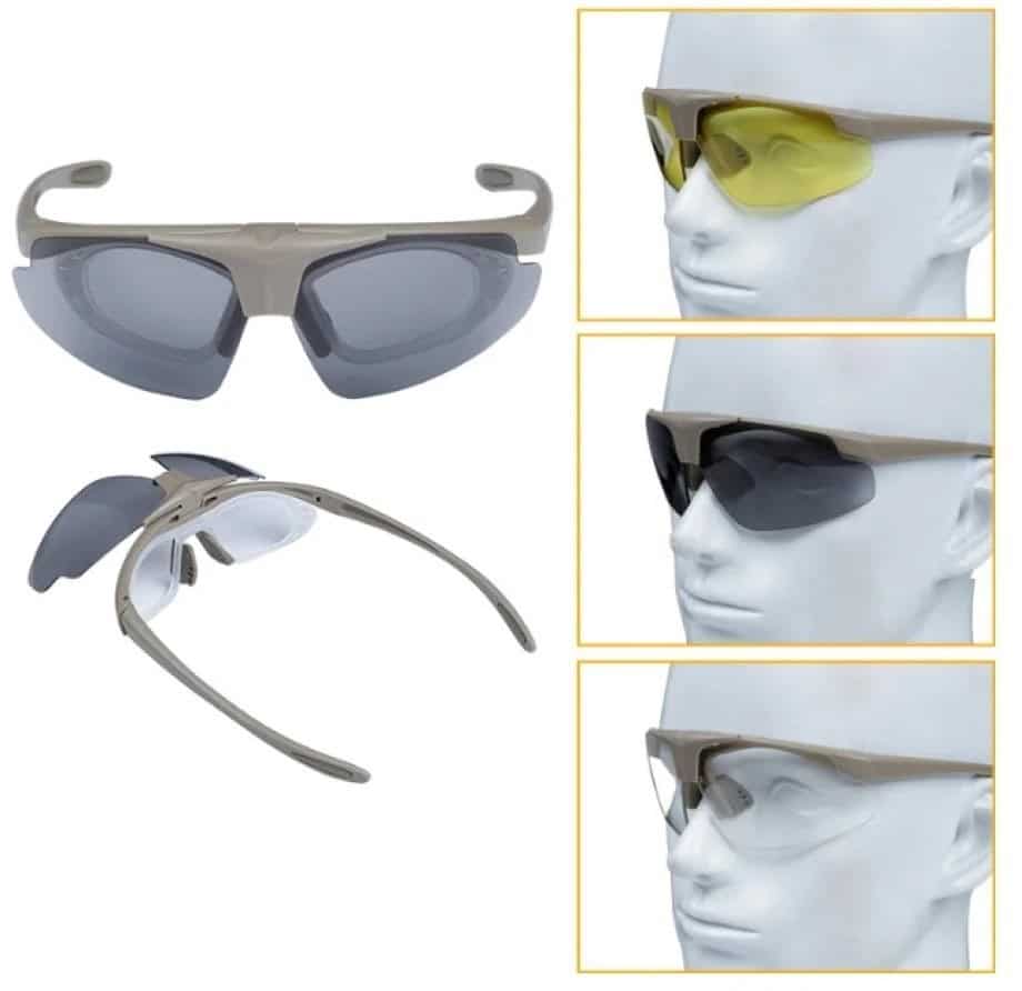 WOSPORT — Okulary strzeleckie Wosport Tan – 3 wymienne wizjery, pasek