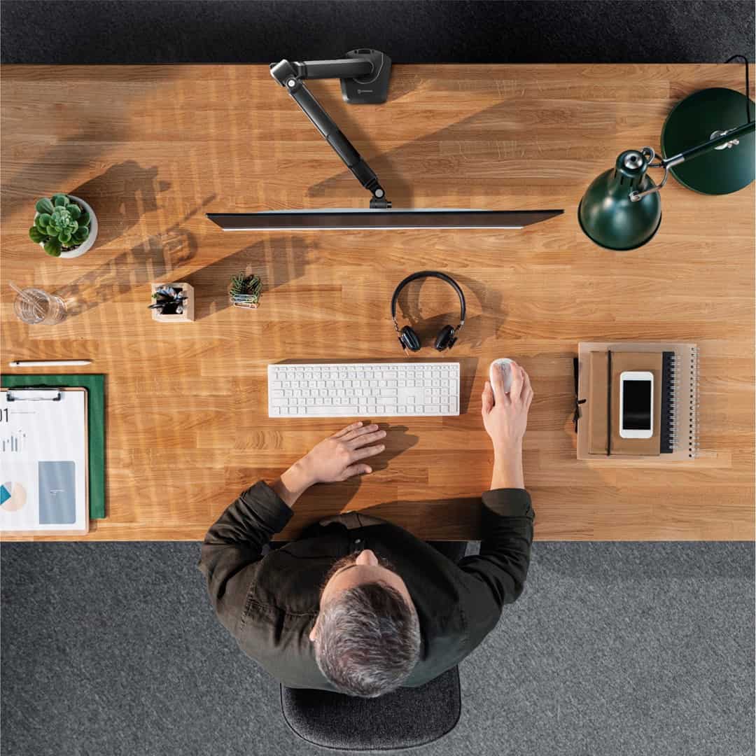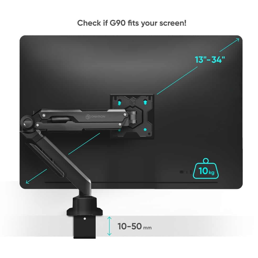 ONKRON — ONKRON G90-B Uchwyt biurkowy obrotowo-nachylny do monitora 13"-34" maks 10 kg, z obracaniem, czarny