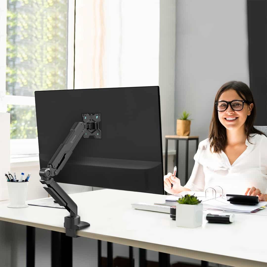 ONKRON — ONKRON G80-B Uchwyt biurkowy obrotowo-nachylny do monitora 13"-32" maks 8 kg, z obracaniem, czarny
