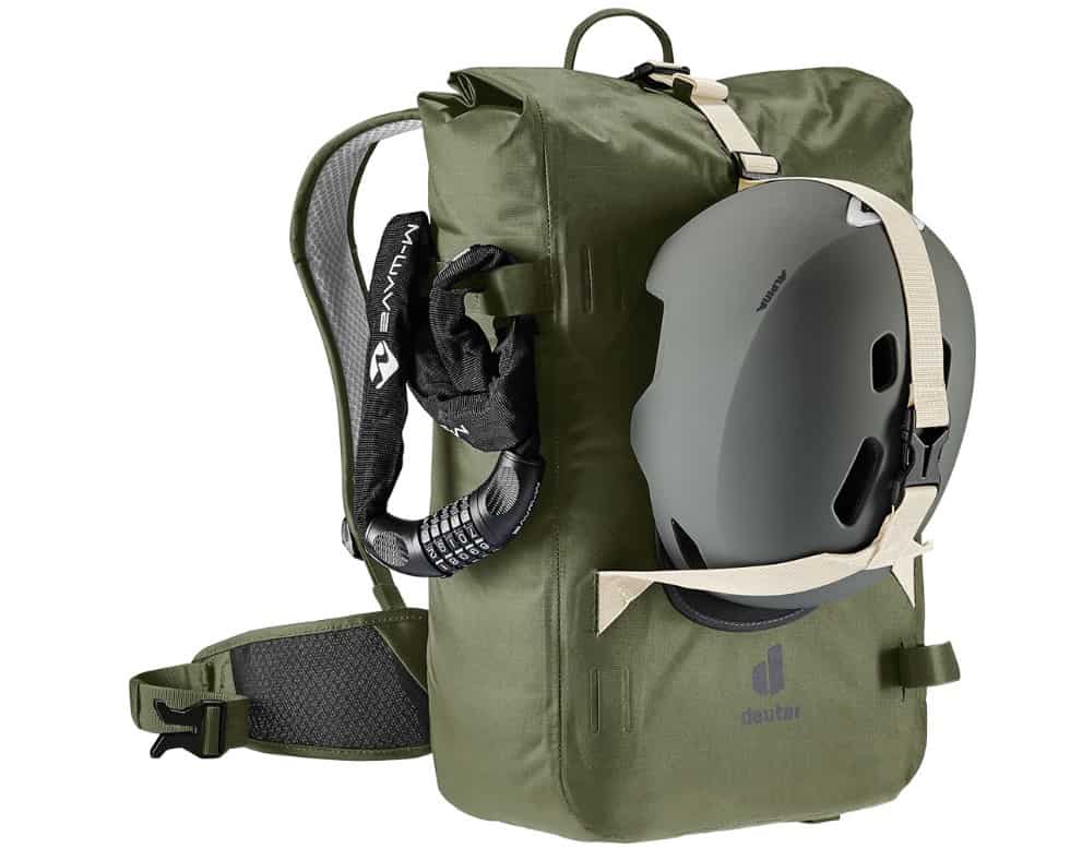 Cechy szczególnepętle mocujące do uchwytu na kask, zwijane zamknięcie dla zwiększania objętości