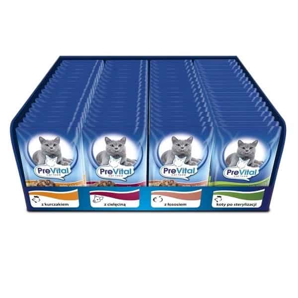 PREVITAL — PREVITAL -Karma dla kotów sterylizovanych – 4 smaki – kurczak, cielęcina, łosoś, drób – Pełnoporcjowa karma dla dorosłych kotów -96x100g