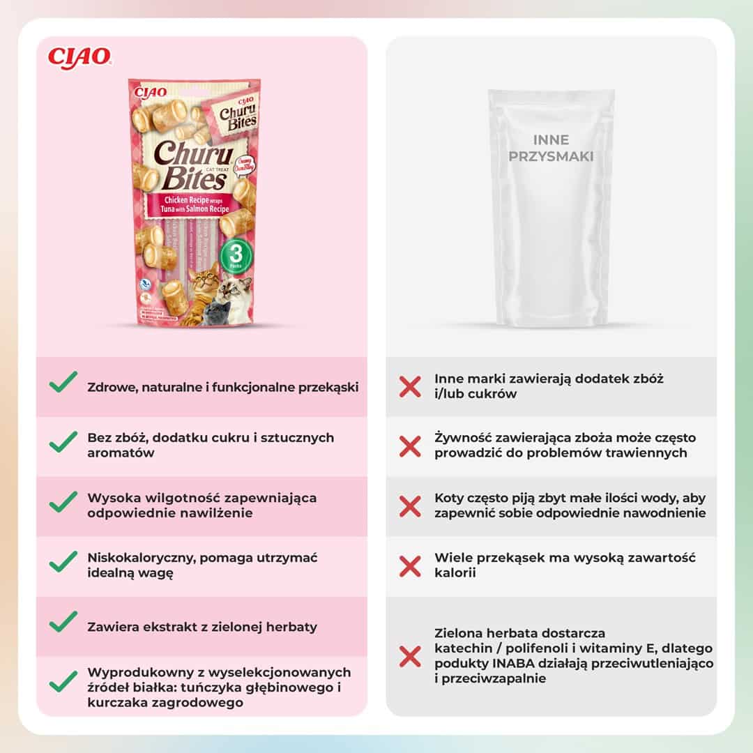INABA — Przysmak CHURU Bites Tuńczyk&Łosoś dla kota 3x10g