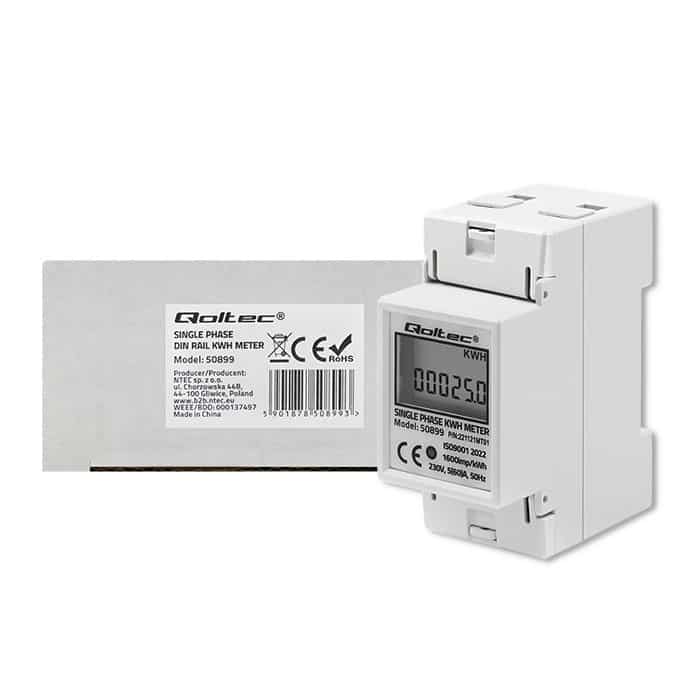 Qoltec — QOLTEC LICZNIK ZUŻYCIA ENERGII JEDNOFAZOWY NA SZYNĘ DIN | 230V | LCD | 2P