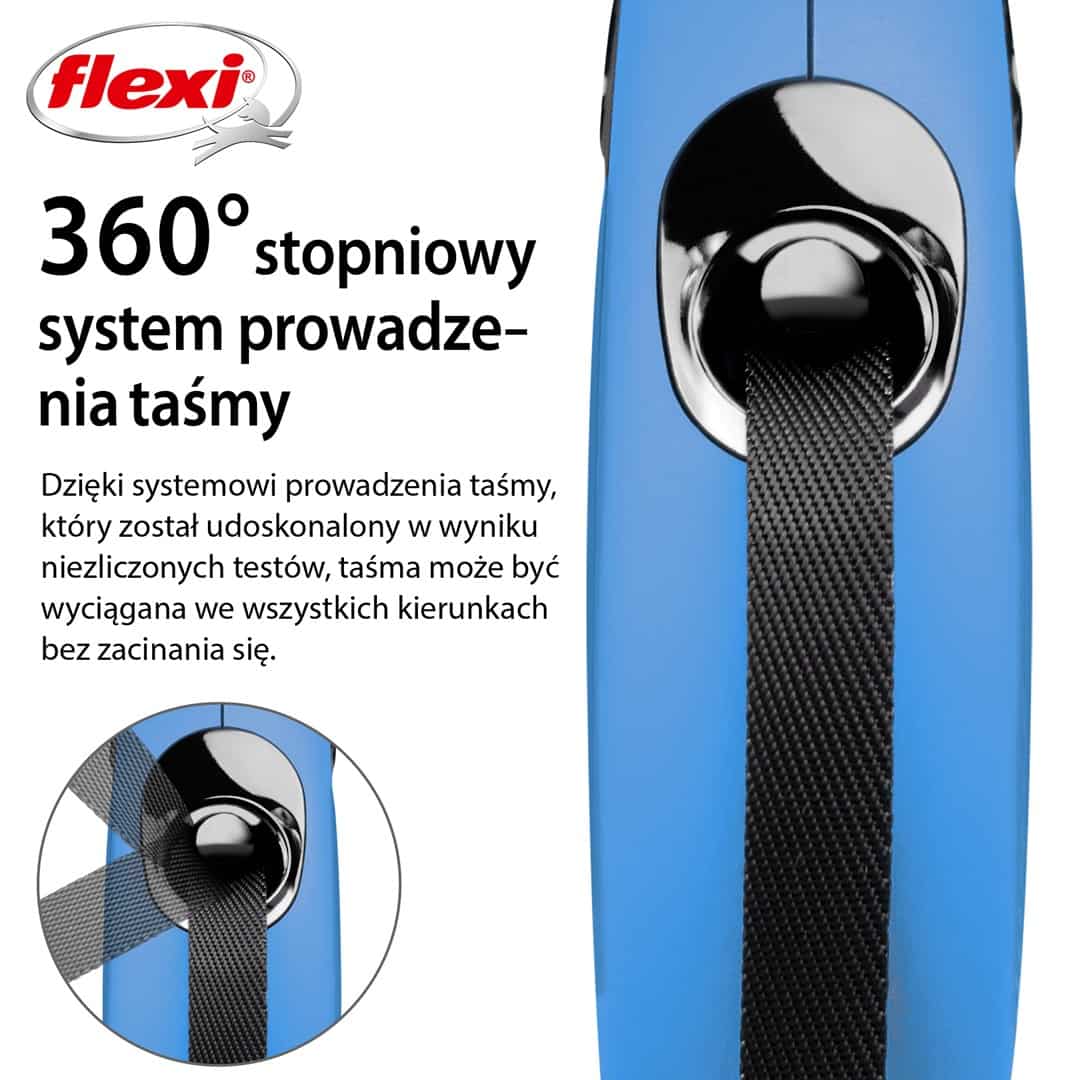 flexi — Smycz flexi automatyczna New Classic S taśma 5 m – dla psa do 15 kg, kolor niebieski