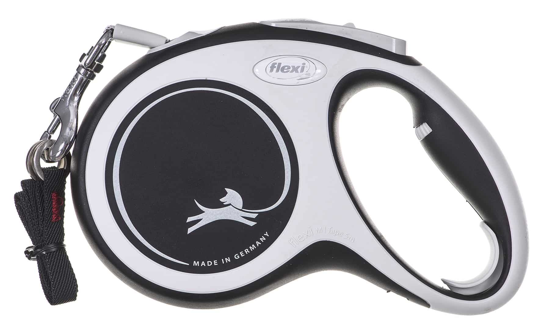 flexi — Smycz flexi automatyczna New Comfort M taśma 5 m – dla psa do 25 kg, kolor czarny