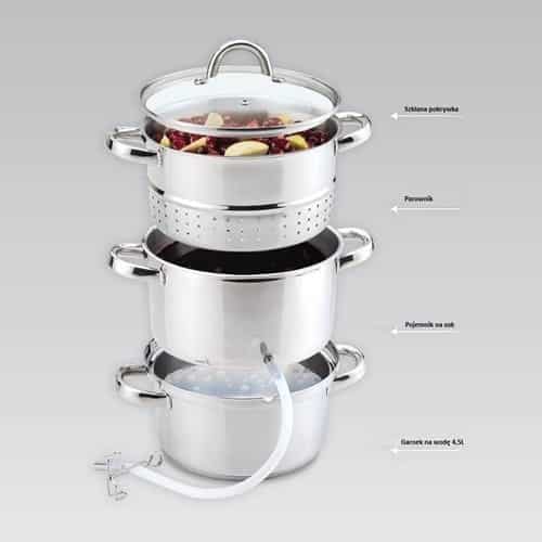 | Pojemność | Garnek na owoce: 8l, Garnek do zbierania soku: 8l, Garnek na wodę: 4,5l |
