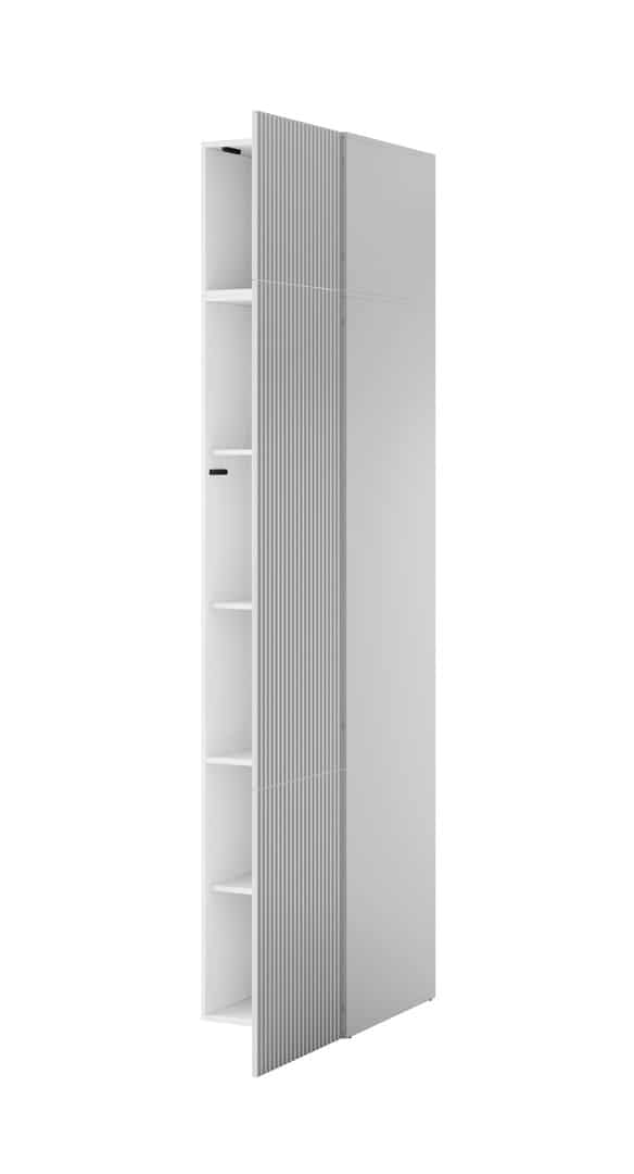 Dodatkowe informacjeJeden front otwierany do boku, Bezuchwytowe fronty, Meble do samodzielnego montażu, Fronty frezowane, Oświetlenie jest opcjonalne i wymaga oddzielnego zakupu, Uchwyty: system PUSH-CLICK