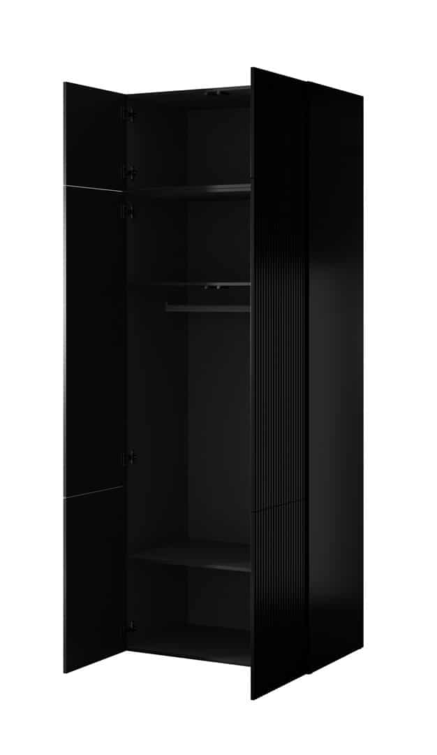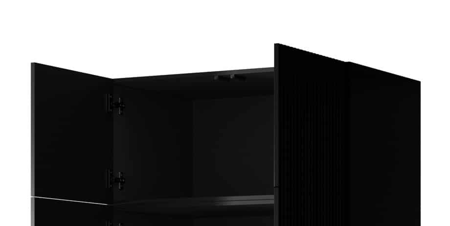 Dodatkowe informacjeMeble do samodzielnego montażu, Dwa fronty otwierane do boku, Fronty frezowane, Bezuchwytowe fronty, Oświetlenie jest opcjonalne i wymaga oddzielnego zakupu, Uchwyty: system PUSH-CLICK