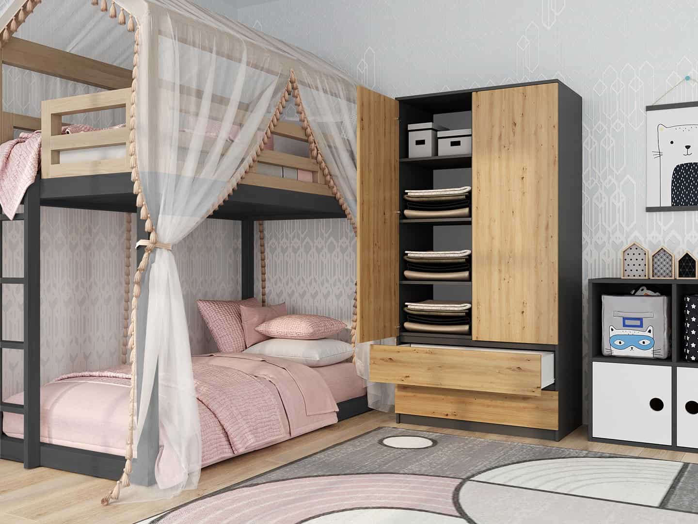 TOP E SHOP — Szafa SS-90 90x50xH180 antracyt/artisan