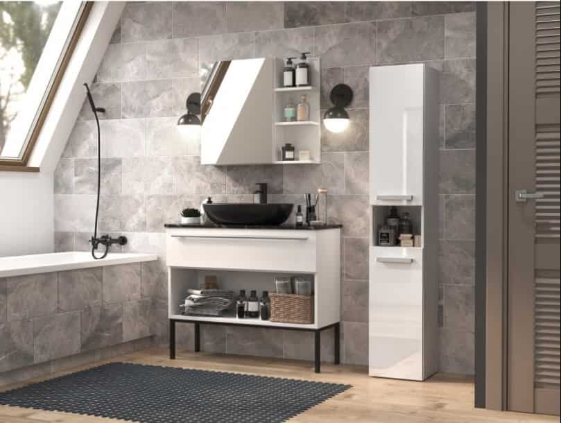TOP E SHOP — Szafka łazienkowa NEL I 31x30xH174 biel połysk