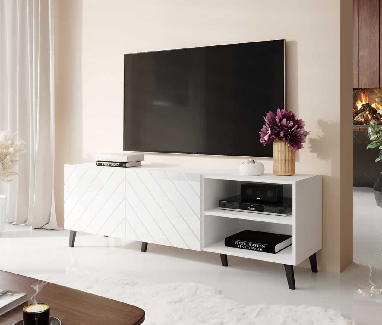 Cama MEBLE — Szafka RTV ABETO 150x42x52 biały/biały połysk