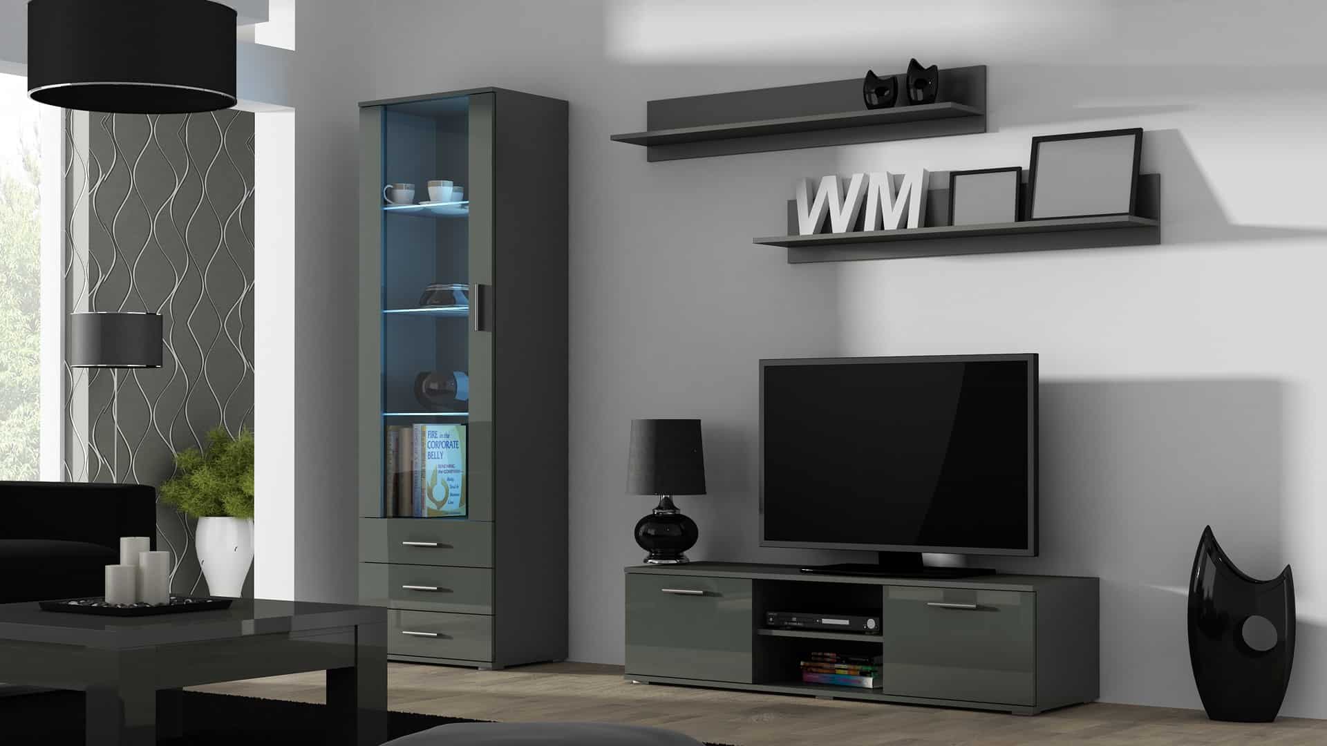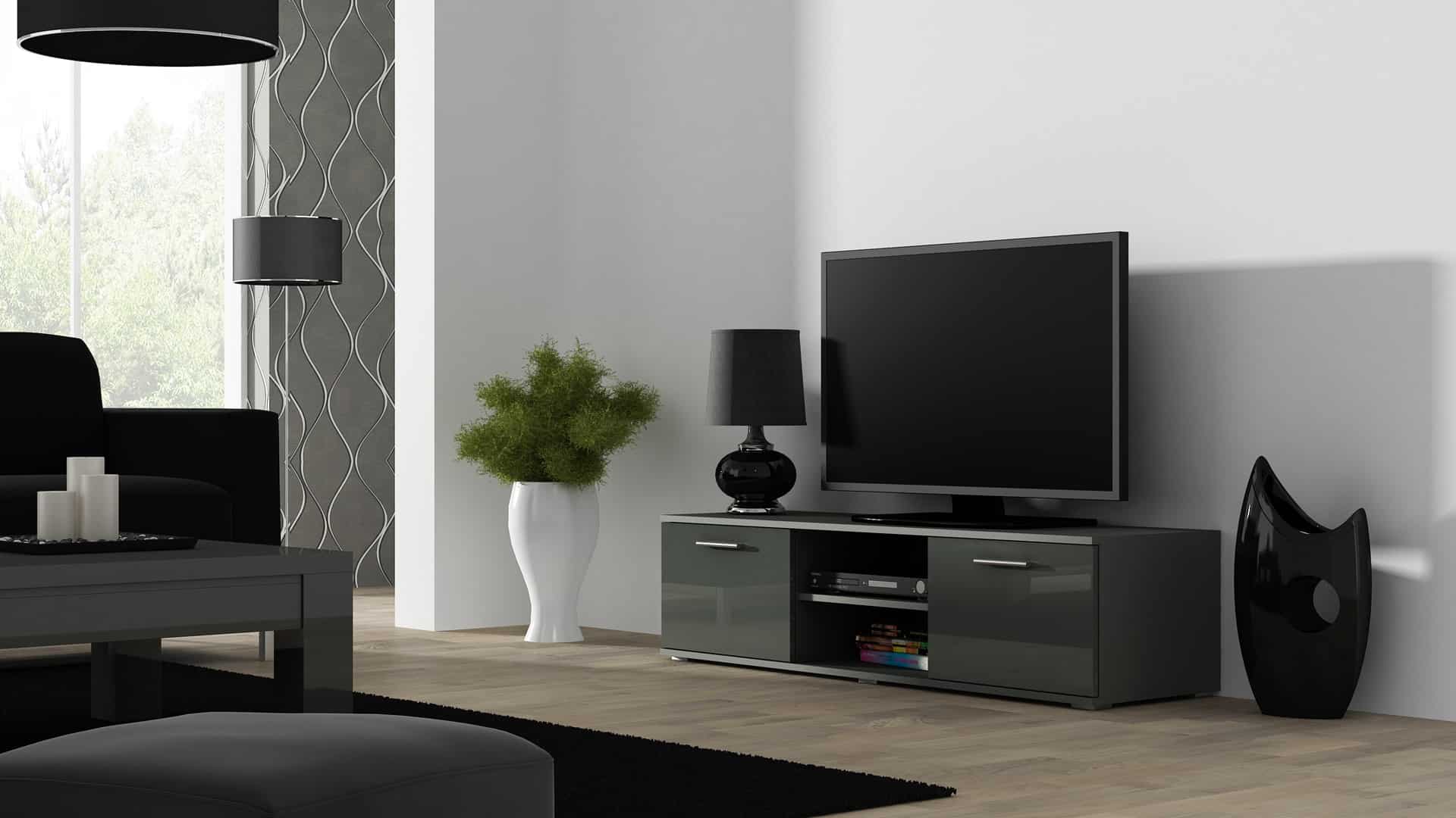 Cama MEBLE — Szafka RTV SOHO 140 szary/ szary połysk