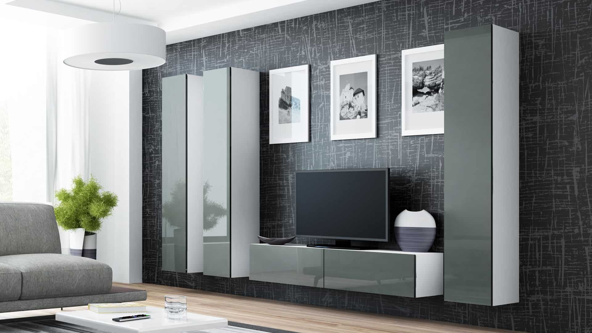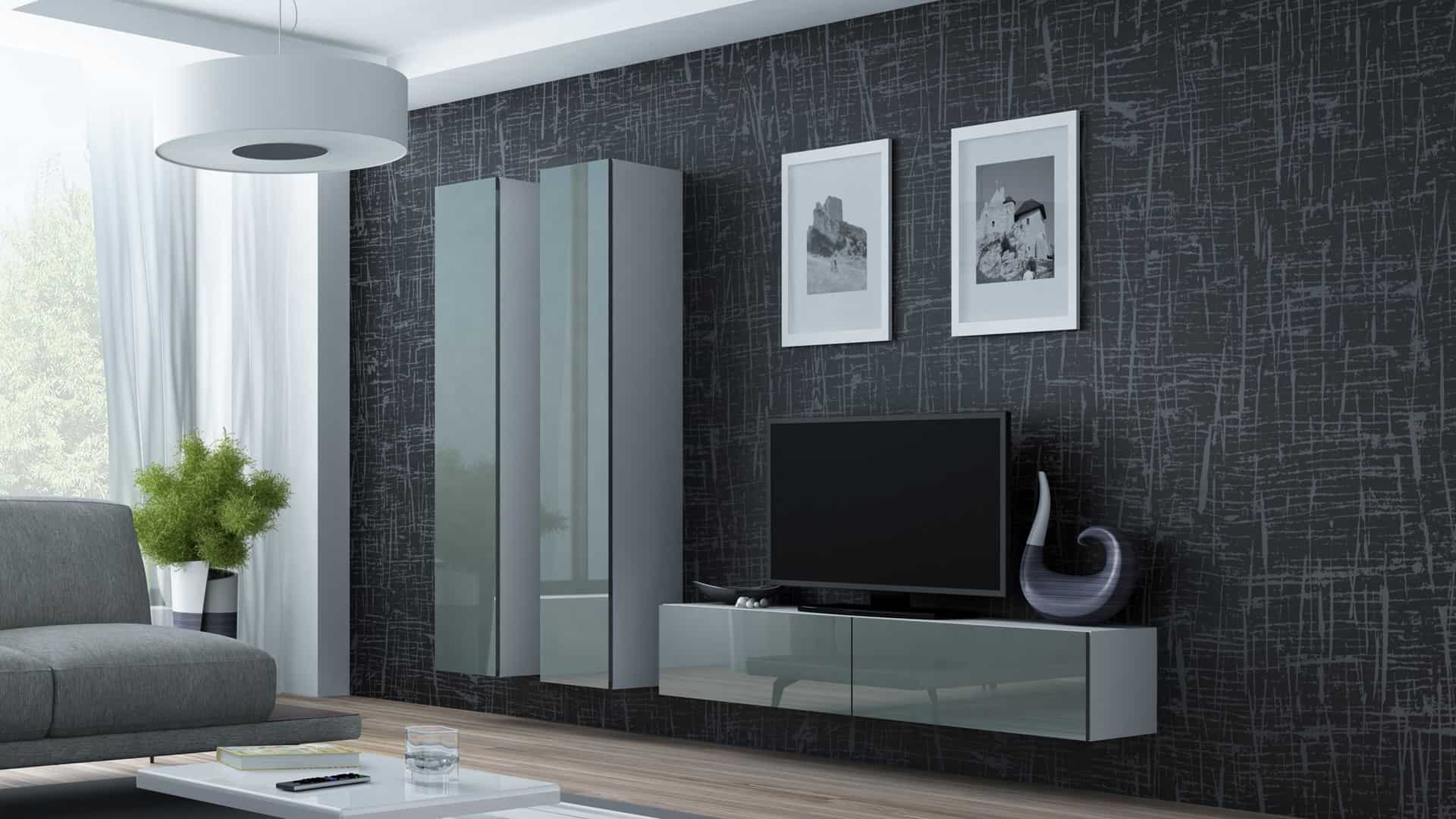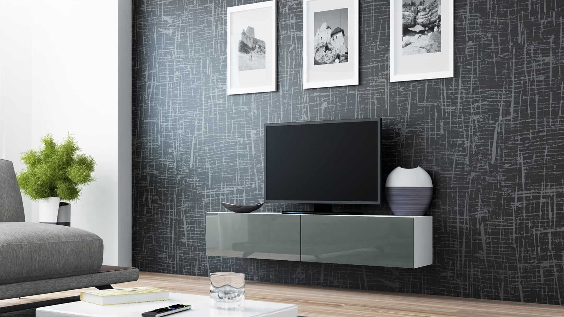 Cama MEBLE — Szafka RTV VIGO '140′ 30/140/40 biały/ szary połysk