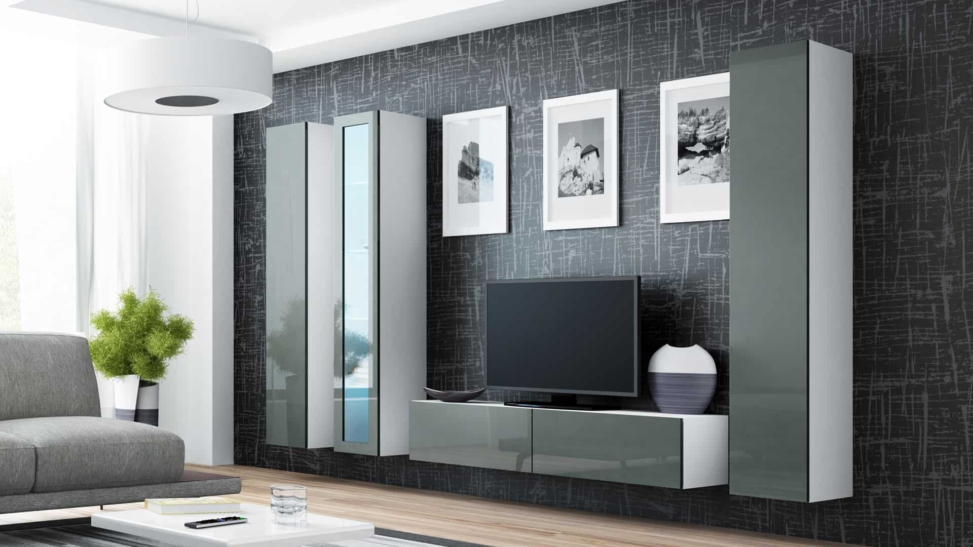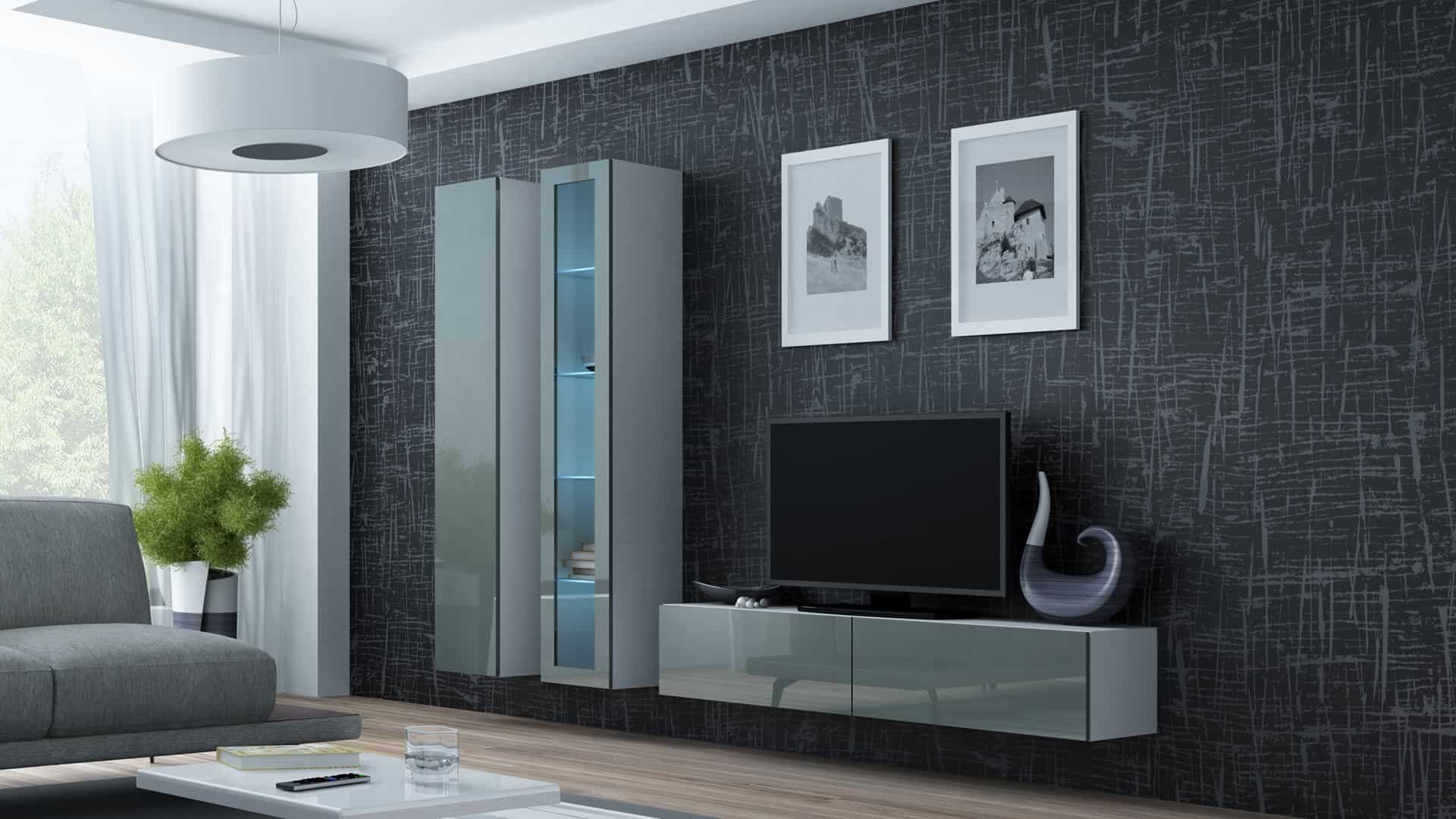 Dodatkowe informacjeZdjęcia zestawów przedstawiają przykładową aranżację z innymi meblami z kolekcji. Pozostałe bryły są dostępne w osobnej sprzedaży., Istnieje możliwość dokupienia oświetlenia szafkowego LED.