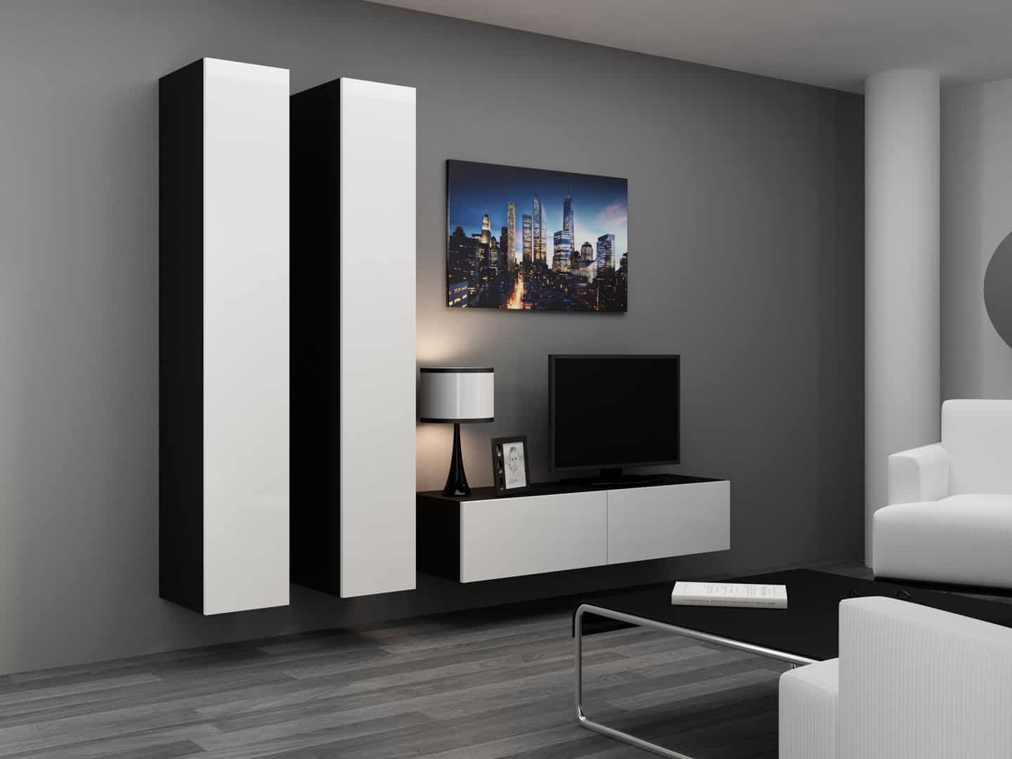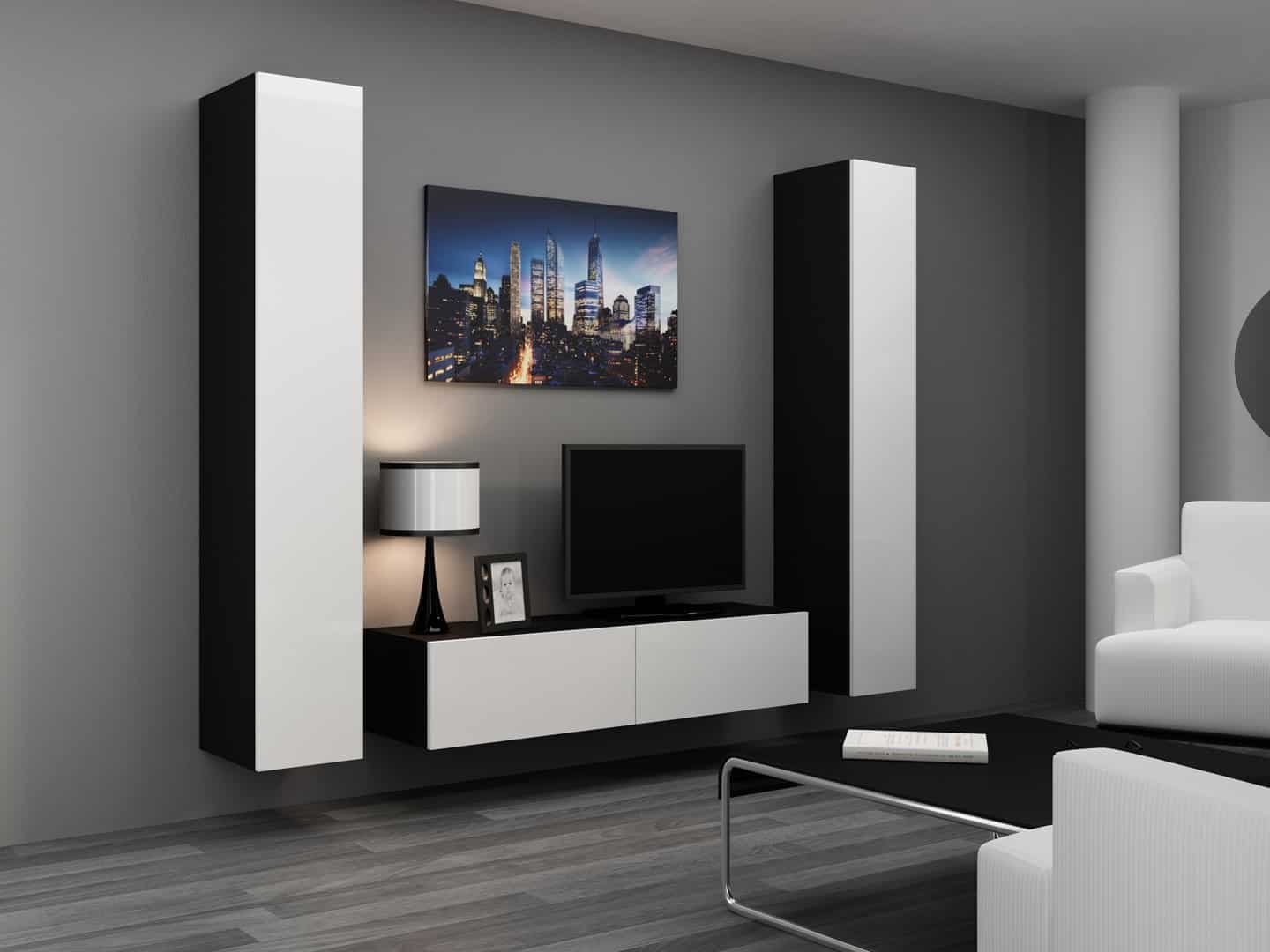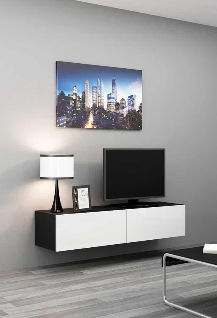 Cama MEBLE — Szafka RTV VIGO '140′ 30/140/40 czarny/biały połysk