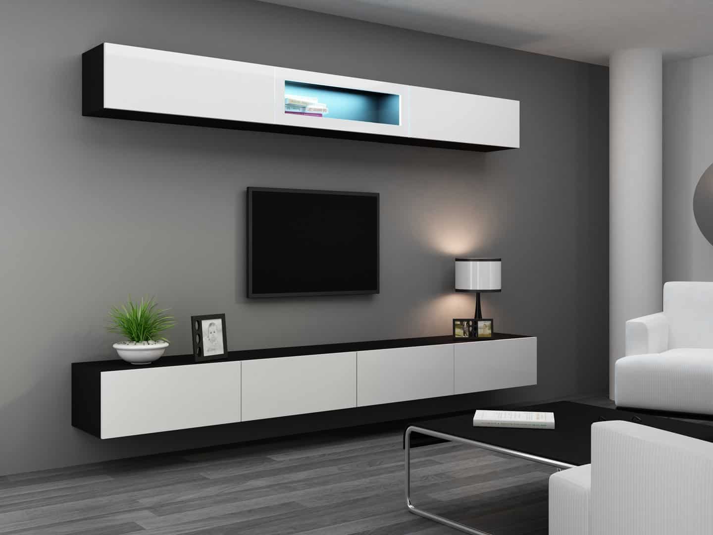 Cama MEBLE — Szafka RTV VIGO '180′ 30/180/40 biały/czarny połysk