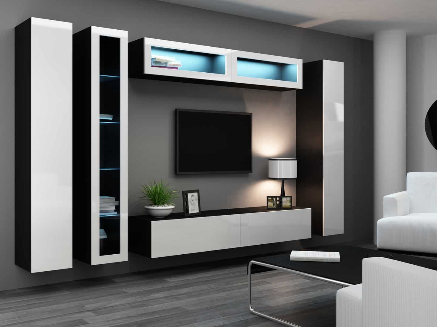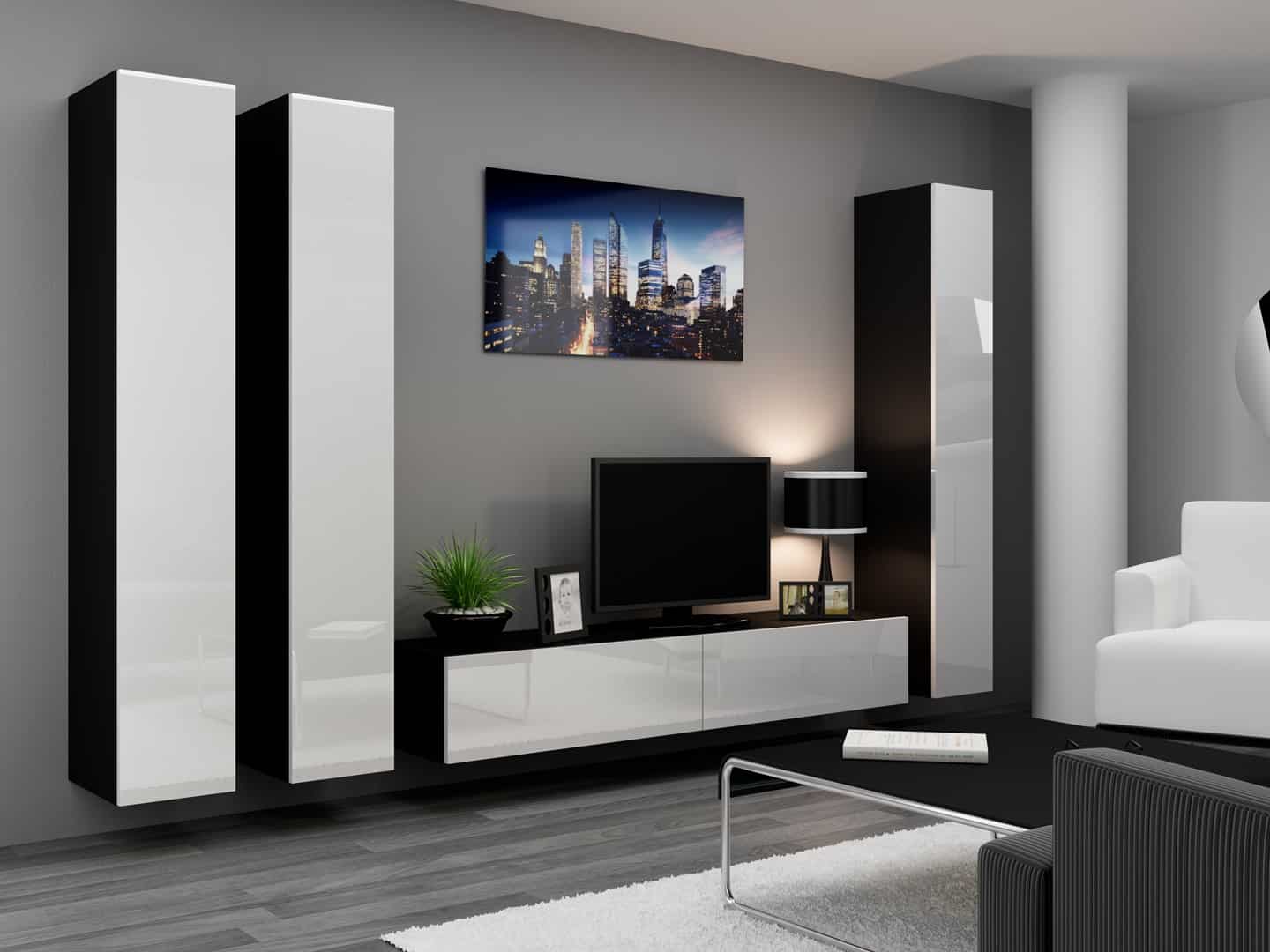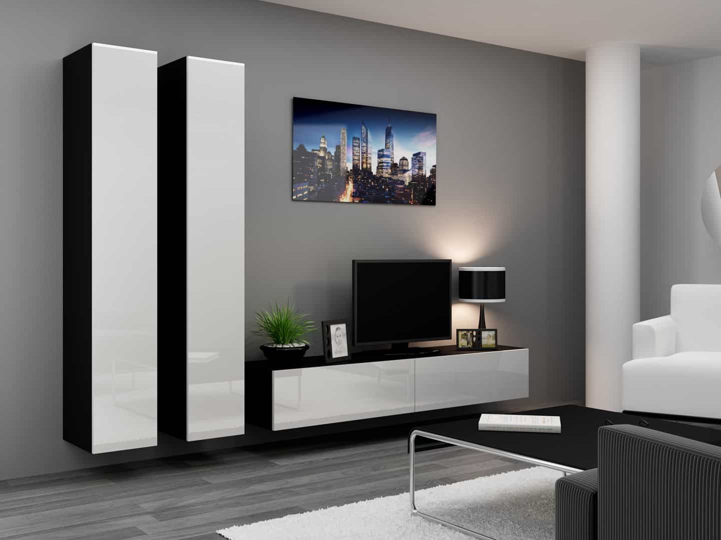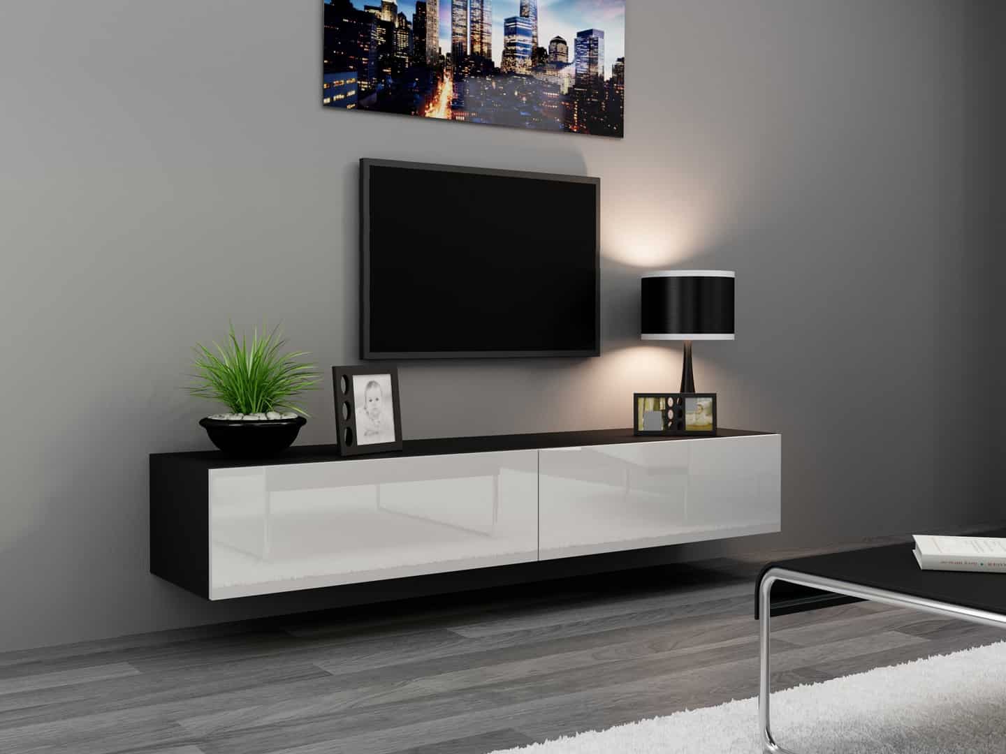 Cama MEBLE — Szafka RTV VIGO '180′ 30/180/40 czarny/biały połysk