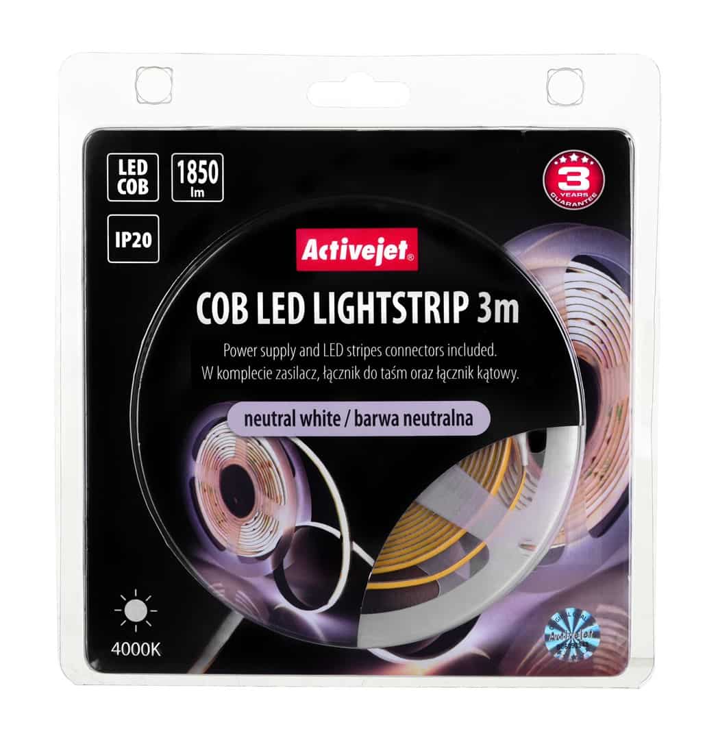 Activejet — Taśma LED COB 3m z zasilaczem barwa neutralna IP20