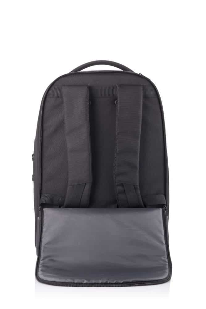 Wyposażenie plecakaWyściełana komora na tablet do 12,9 ", Zintegrowany zamek TSA, Wyściełana komora na laptopa, Zintegrowany port USB, Chowana rączka teleskopowa, Panel organizacyjny, Regulowane szelki z możliwością ukrycia, Wykonane z materiałów RPET, Odblaskowe logo, Kieszenie chronione RFID, Teleskopowa rączka
